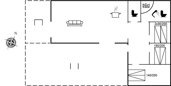 Der er i alt 3 soveværelser. Sovepladserne fordeler sig på: 4 sovepladser i dobbeltsenge. 2 sovepladser i enkeltsenge. 2 sovepladser på madrasser. 2 af disse sovepladser befinder sig på husets hems. Derudover er der 2 stk. barnesenge.
