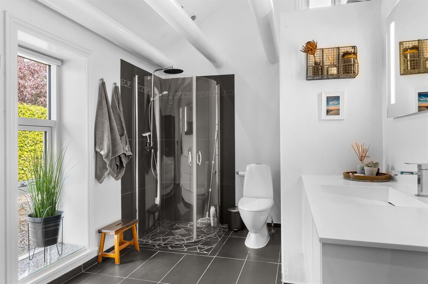 Der er 1 badeværelse med bruseniche og 2 toiletter, heraf 1 gæstetoilet. Der er gulvvarme på 1 badeværelse. Der er gulvvarme på gæstetoilettet.