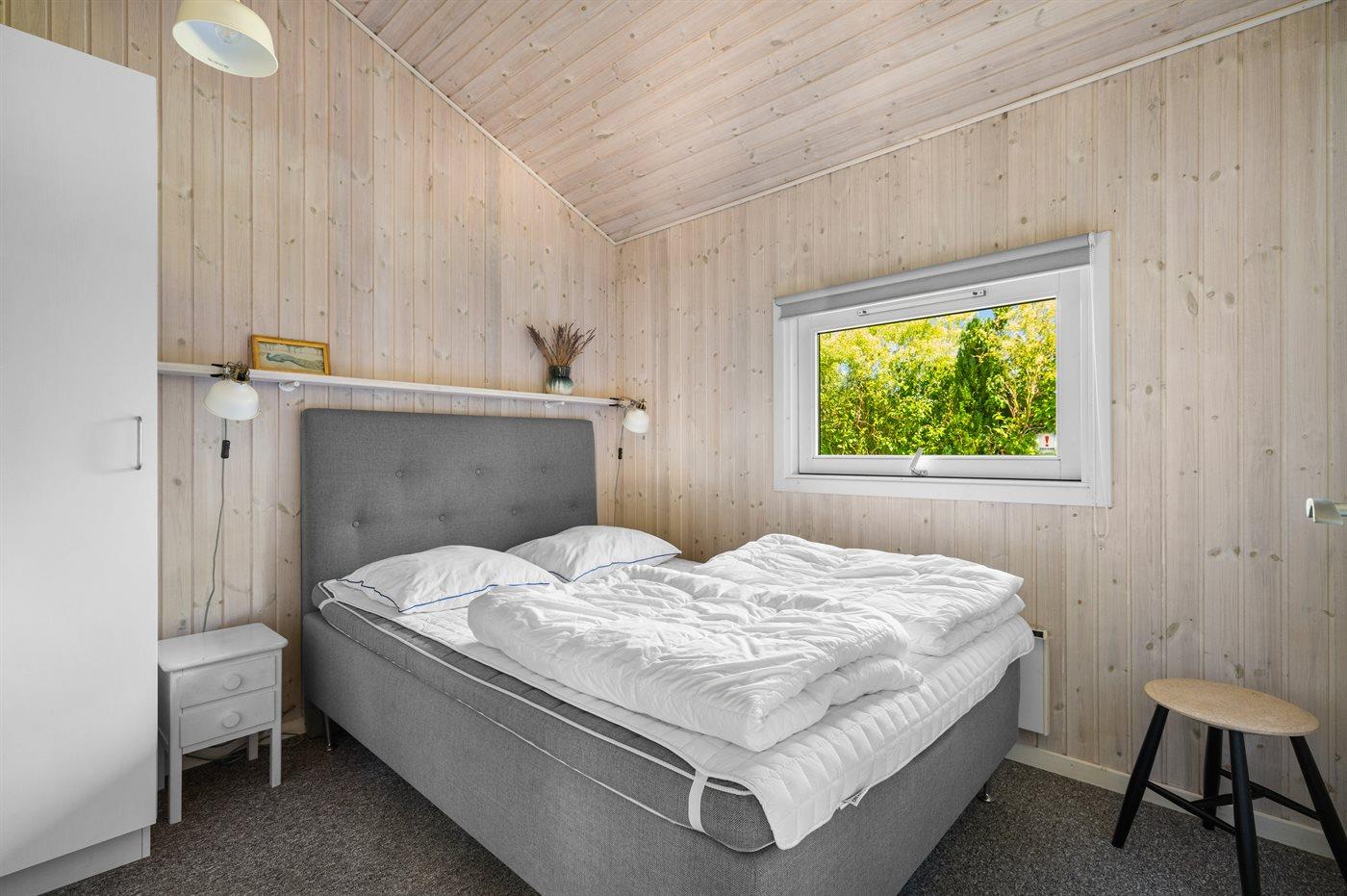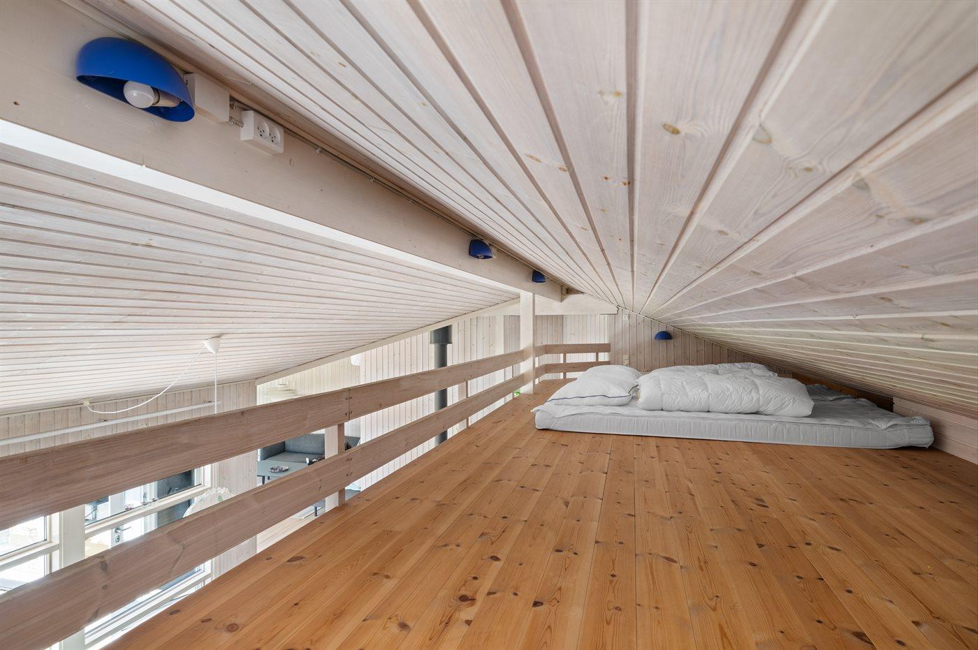 Der er i alt 3 soveværelser. Sovepladserne fordeler sig på: 4 sovepladser i dobbeltsenge. 2 sovepladser i enkeltsenge. 2 sovepladser på madrasser. 2 af disse sovepladser befinder sig på husets hems. Derudover er der 1 stk. barneseng.