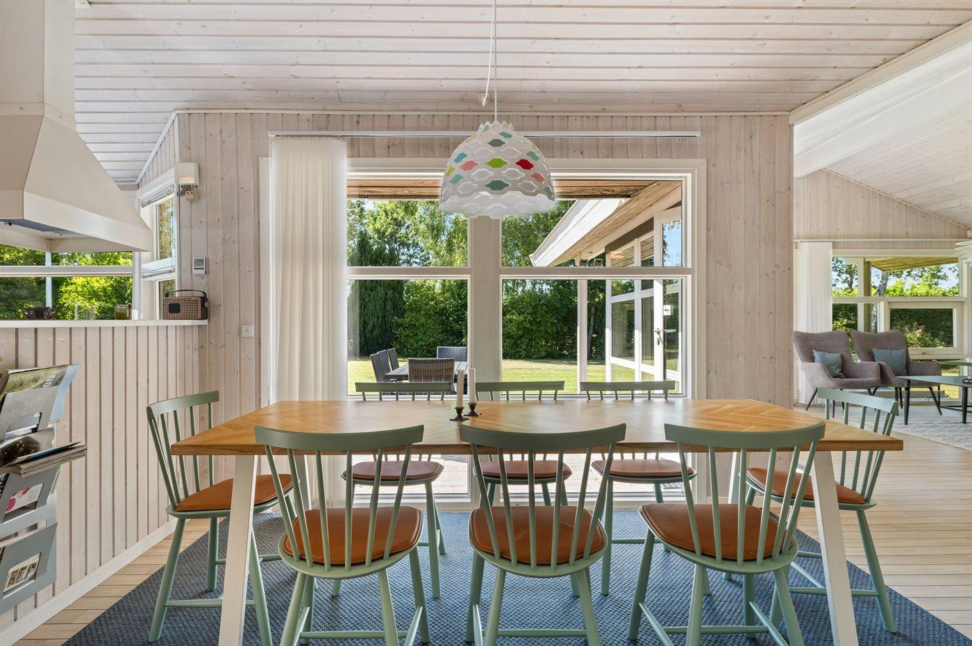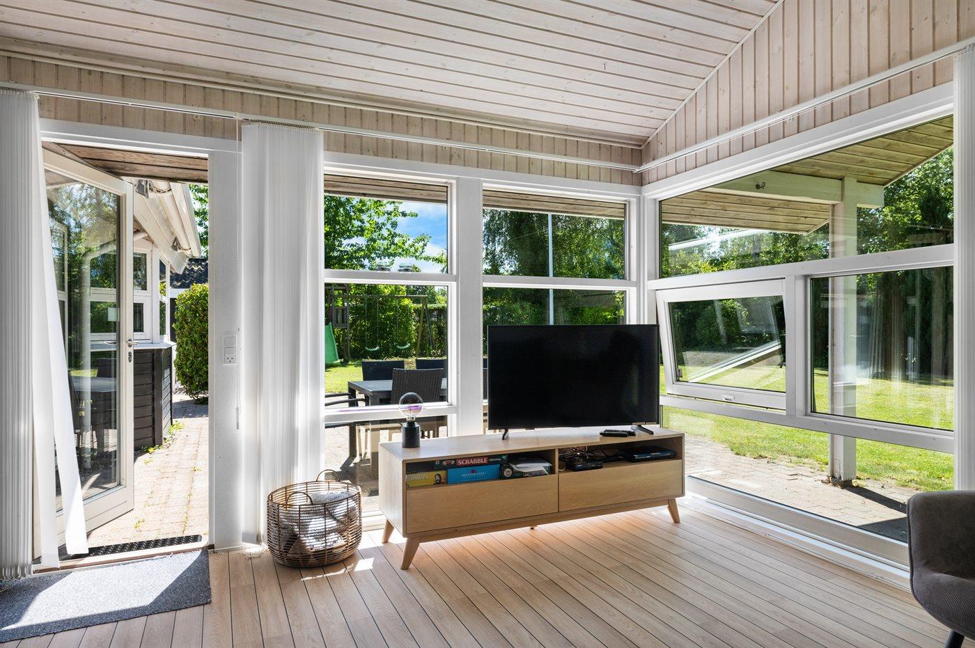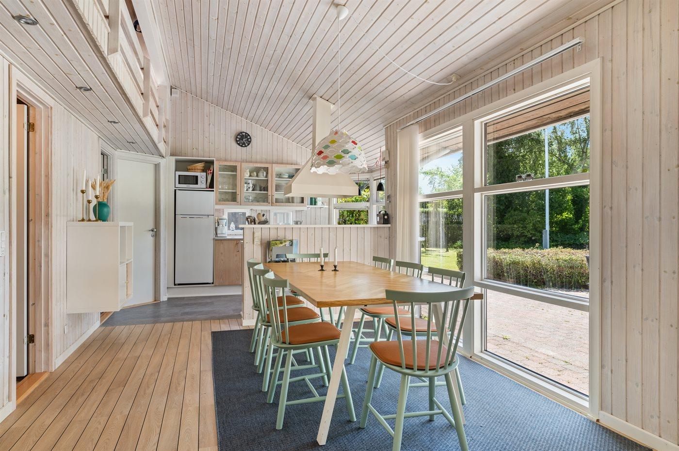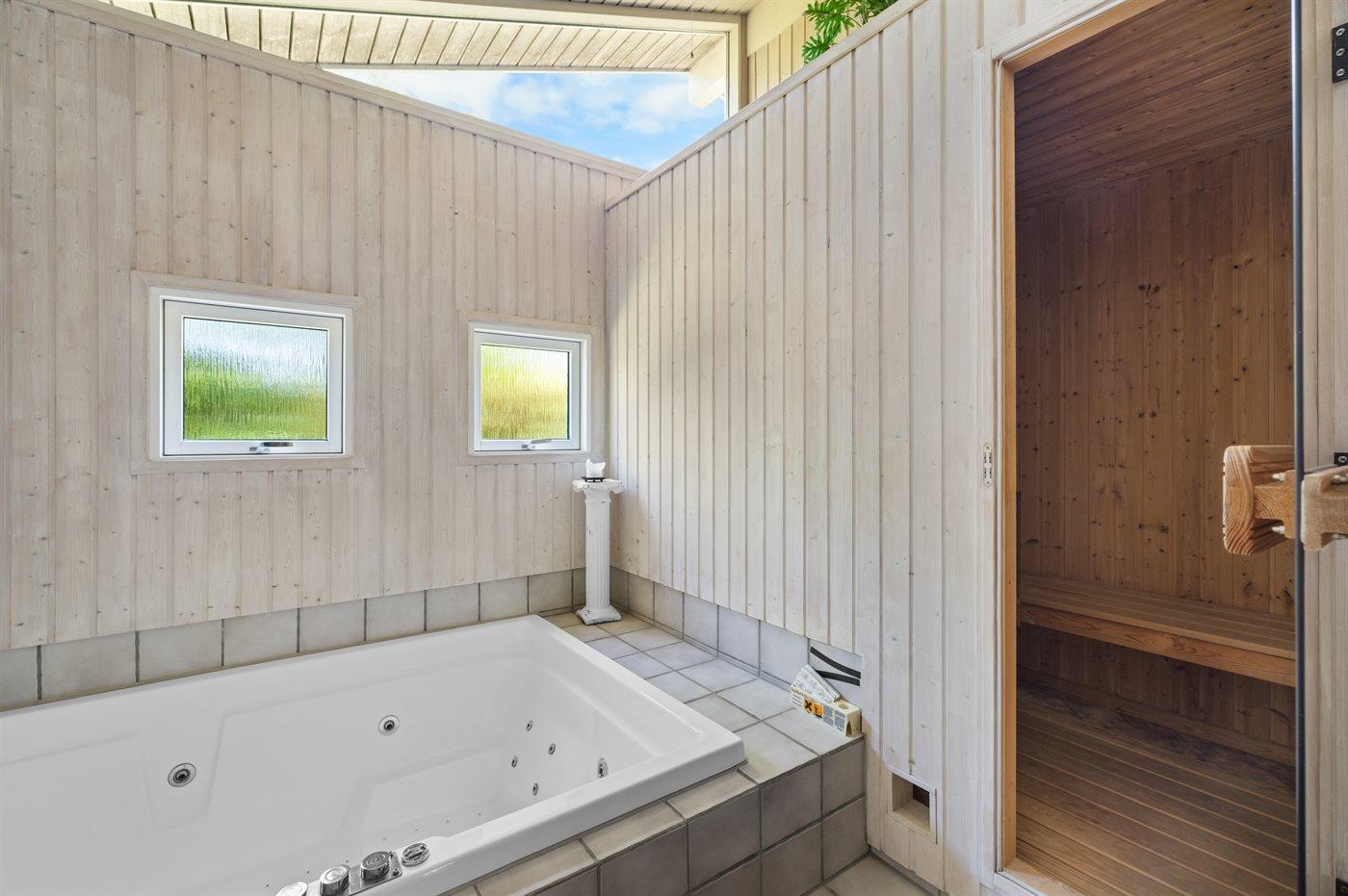 Et dejligt sommerhus med spa og sauna. Huset er lyst og hyggeligt indrettet og der findes flere gode terrasser omkring huset, hvoraf en del er overdækket.