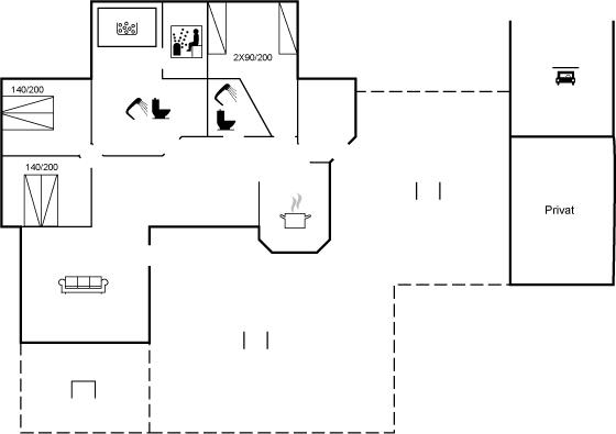 Bemærk, at to af sovepladserne befinder sig på husets hems, som grundet adgangsforholdene er bedst egnet til et par større børn eller unge mennesker.