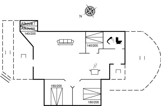 Der er i alt 3 soveværelser. Sovepladserne fordeler sig på: 6 sovepladser i dobbeltsenge. 1 soveplads i alkove. Derudover er der 1 stk. barneseng.