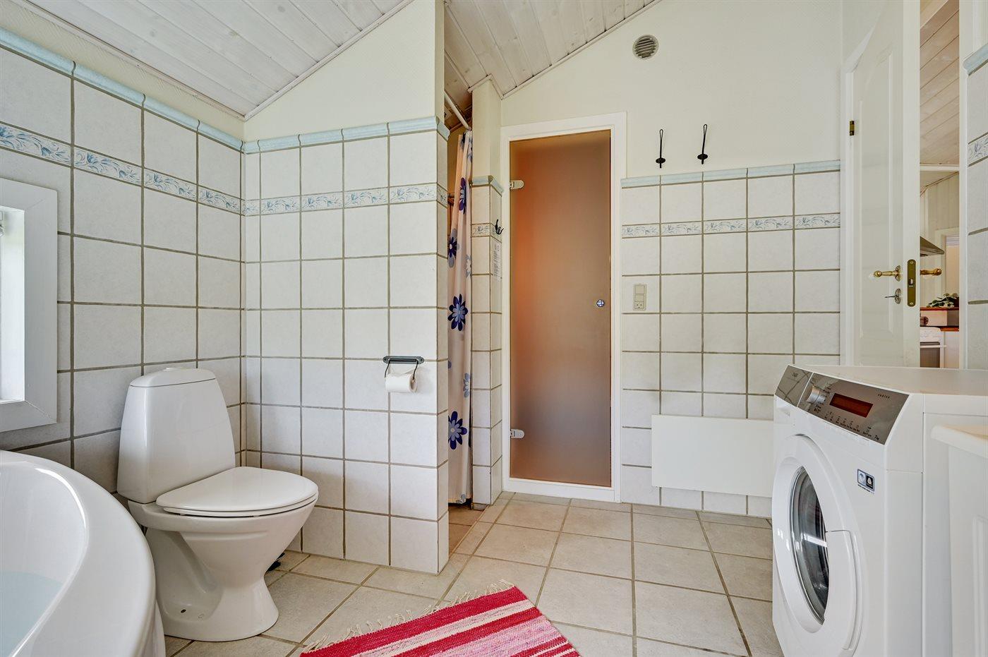 Der er 2 badeværelser med bruseniche og 2 toiletter I saunaen er der mulighed for afslapning.