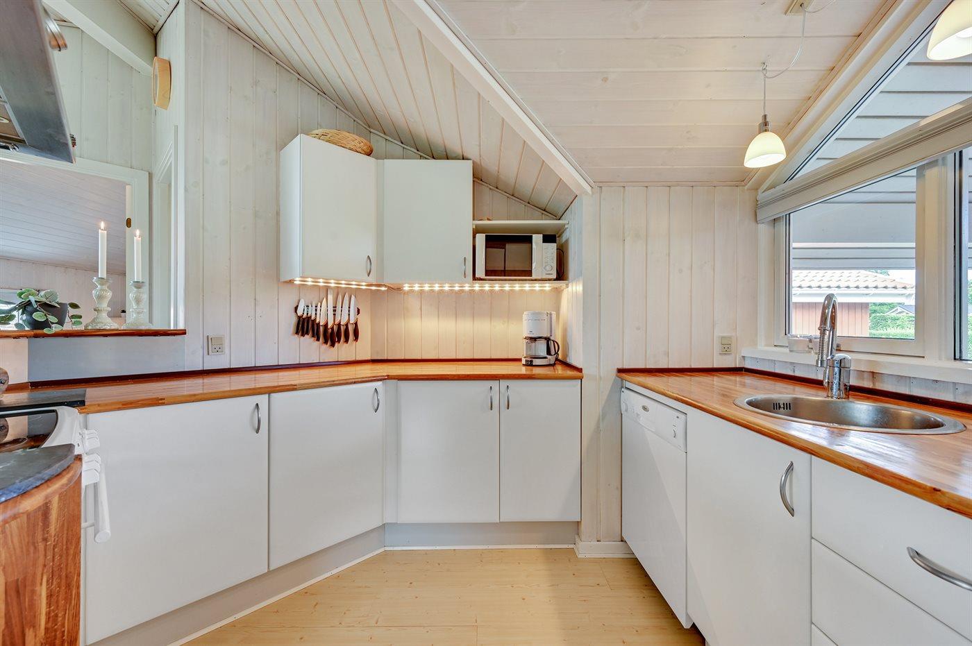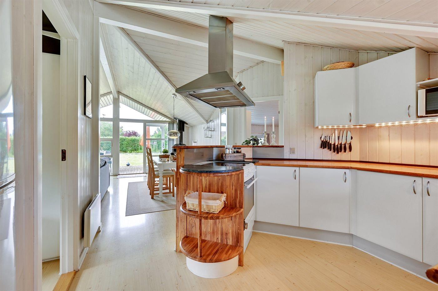 Køkkenet er udstyret med 1 køleskab. Der er 4 keramiske kogeplader, varmluftovn, mikrobølgeovn samt opvaskemaskine.