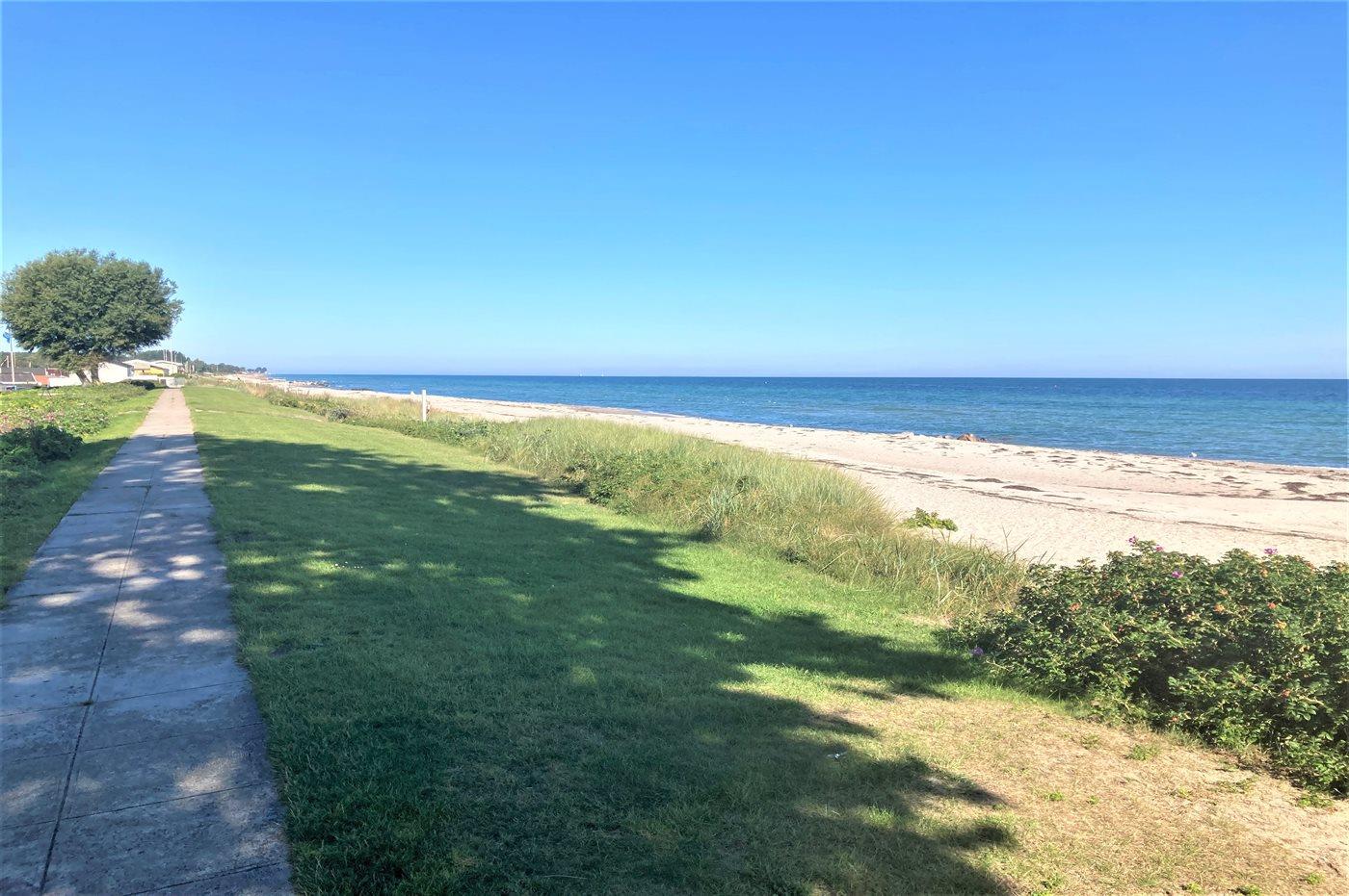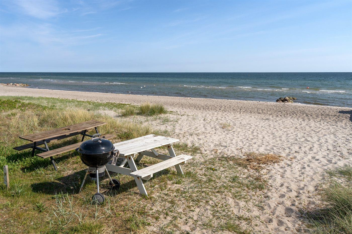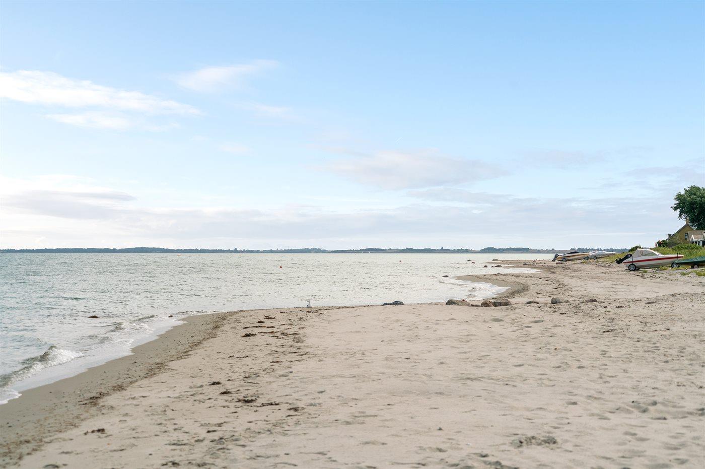 I 2. række til havet, ved én af Fyns bedste badestrande, ligger dette charmerende sommerhus med nærmest direkte adgang til stranden. Huset har i forhold til de andre huse i området en stor grund, så der er god plads at boltre sig på. Huset har et flot terrasseareal både foran, langs og bag huset, og haven bag huset er lukket og ugenert. Her findes også et anneks, som indeholder to af sovepladserne.