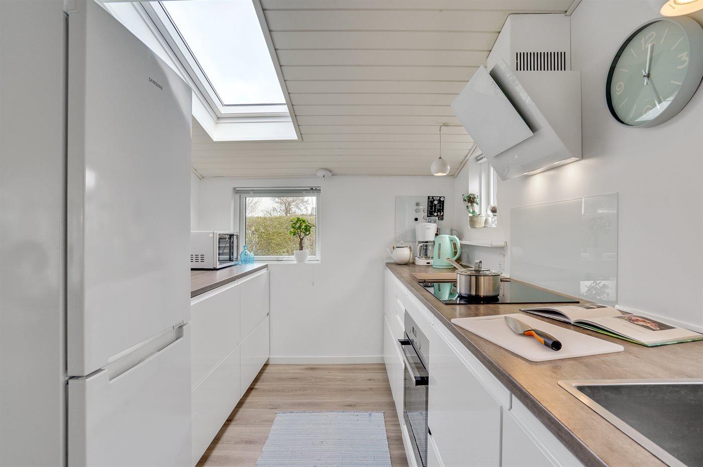 Køkkenet er udstyret med 2 køleskabe. Der er 4 induktionskogeplader, varmluftovn, mikrobølgeovn samt opvaskemaskine.