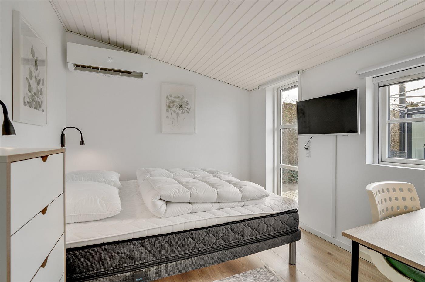 Der er i alt 4 soveværelser. Sovepladserne fordeler sig på: 8 sovepladser i dobbeltsenge. 4 af disse sovepladser befinder sig i anneks. Derudover er der 1 stk. barneseng.