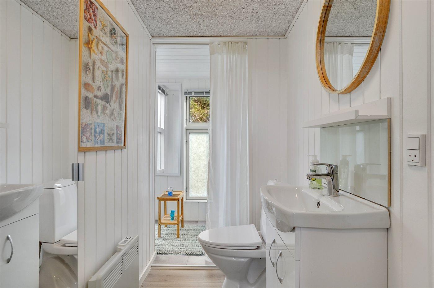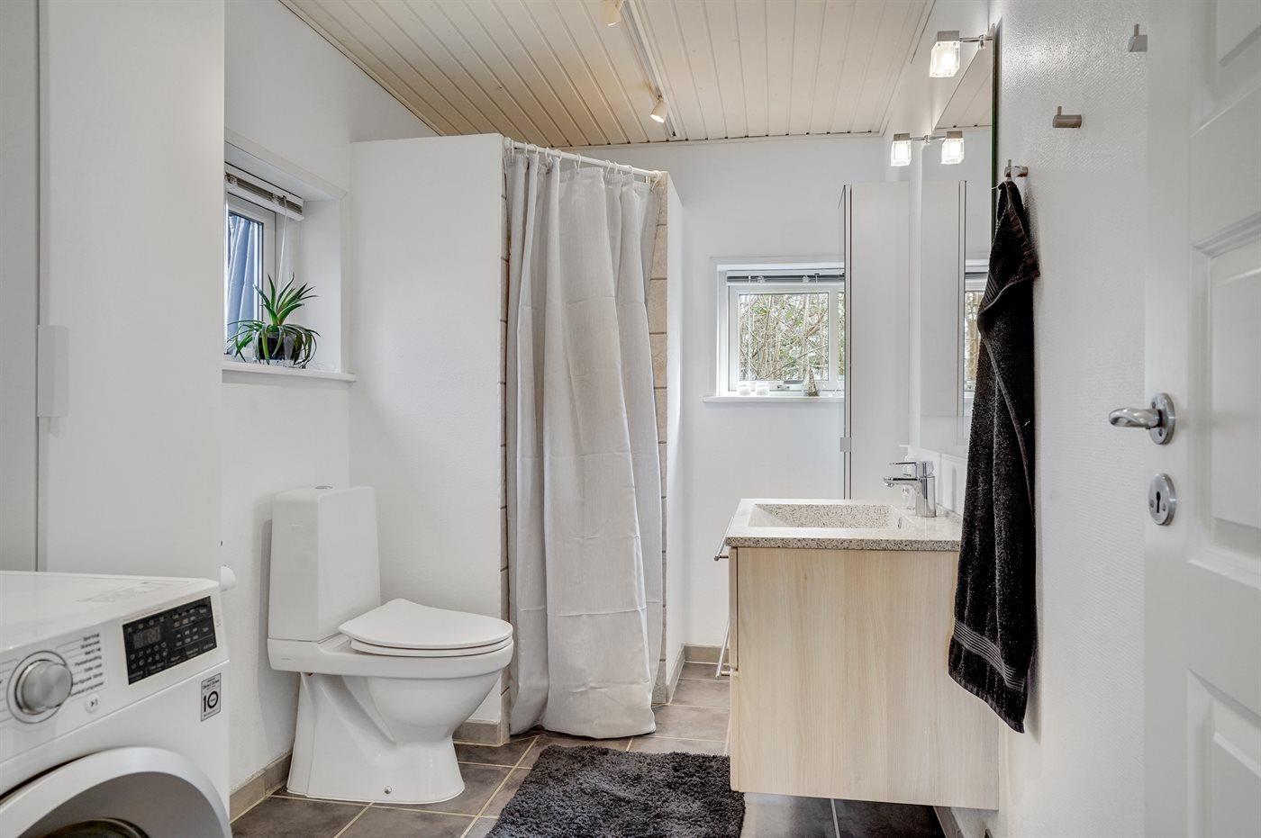 Der er 2 badeværelser med bruseniche og 2 toiletter. Der er gulvvarme på 1 badeværelse.