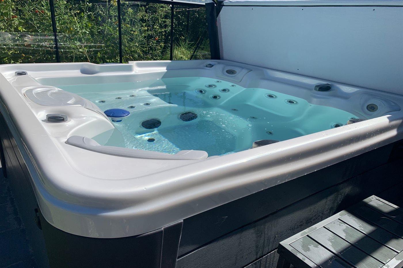 Der er mulighed for afslapning i udendørs standvandsspa til 5 personer.