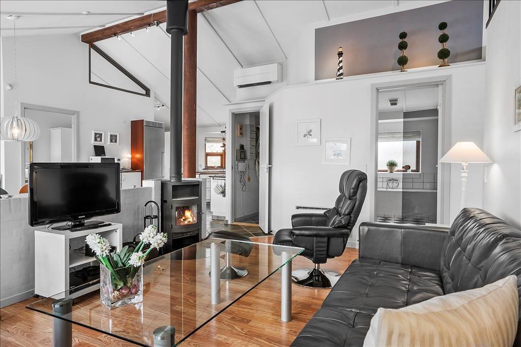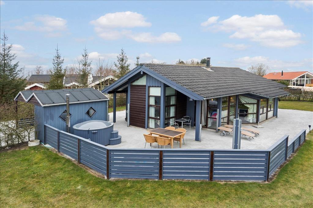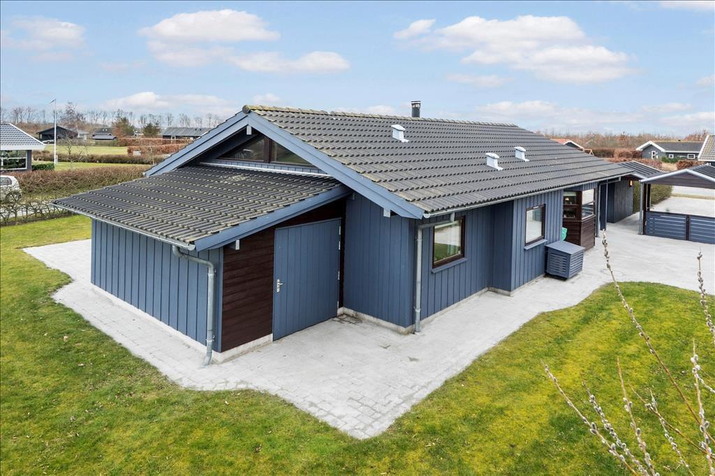 Flot og velholdt sommerhus, beliggende i det attraktive sommerhusområde Hasmark, kun 250 meter fra stranden. Huset indeholder en dejlig stor stue med brændeovn, spiseplads og udgang til terrasse samt i åben forbindelse med det moderne og veludstyrede køkken. Derudover er der en entré, 3 gode soveværelser samt et stort badeværelse med bruser, badekar, sauna, vaskemaskine og tørretumbler. Ved siden af køkkenet er der et mindre depotrum og endelig er der en stor hems med god plads og 2 madrasser. Huset egner sig bedst til op til 6 voksne og 2 børn/unge. Der er vildmarksbad på terrassen.