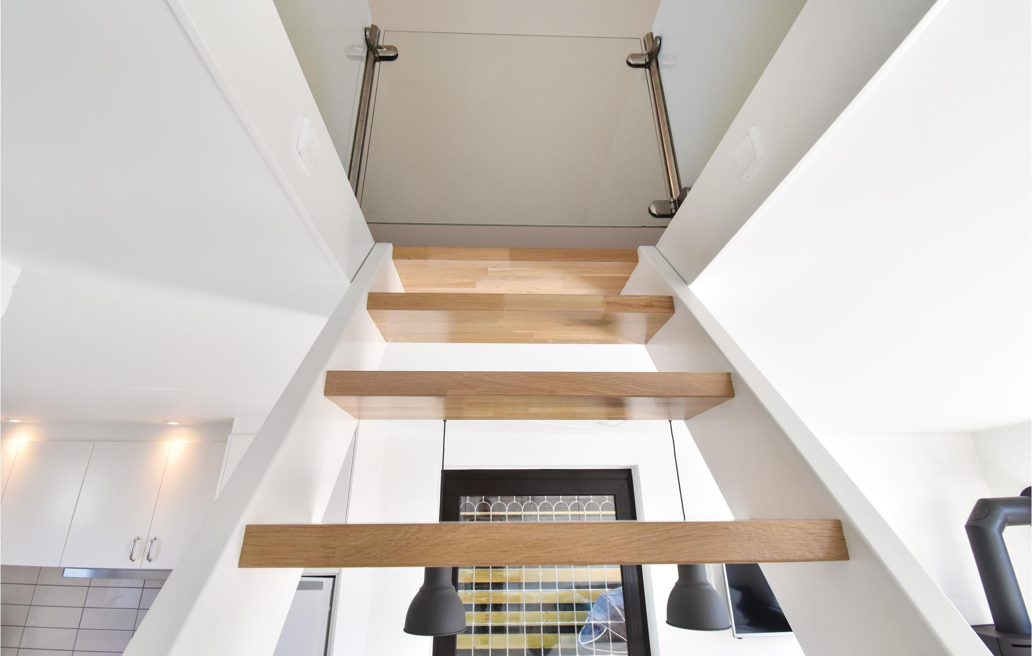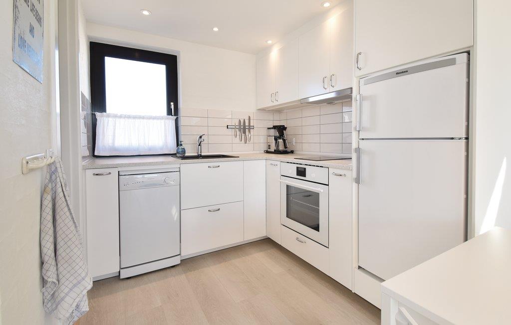 Et lille men meget hyggeligt og lyst indrettet feriehus beliggende kun et stenkast fra den skønne Hasmark Strand. Ved huset findes en ugeneret fliseterrasse med havemøbler, grill og sandkasse. Huset er rigtig godt udnyttet, og indeholder et fint køkken/alrum med spiseplads og brændeovn. I badeværelset er der også blevet plads til en vaskemaskine. Til førstesalen, med det store åbne soveværelse, fører en forholdsvis stejl trappe (uden gelænder) op, med låge øverst oppe for enden af trappen. I soveværelset står to dobbeltsenge, en i hver ende af værelset.