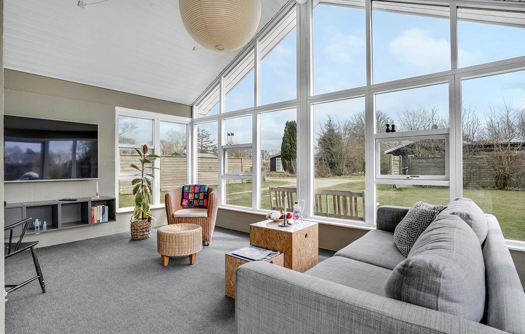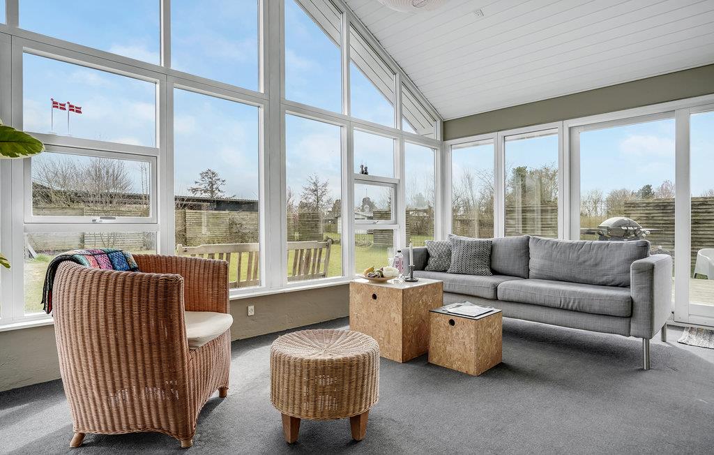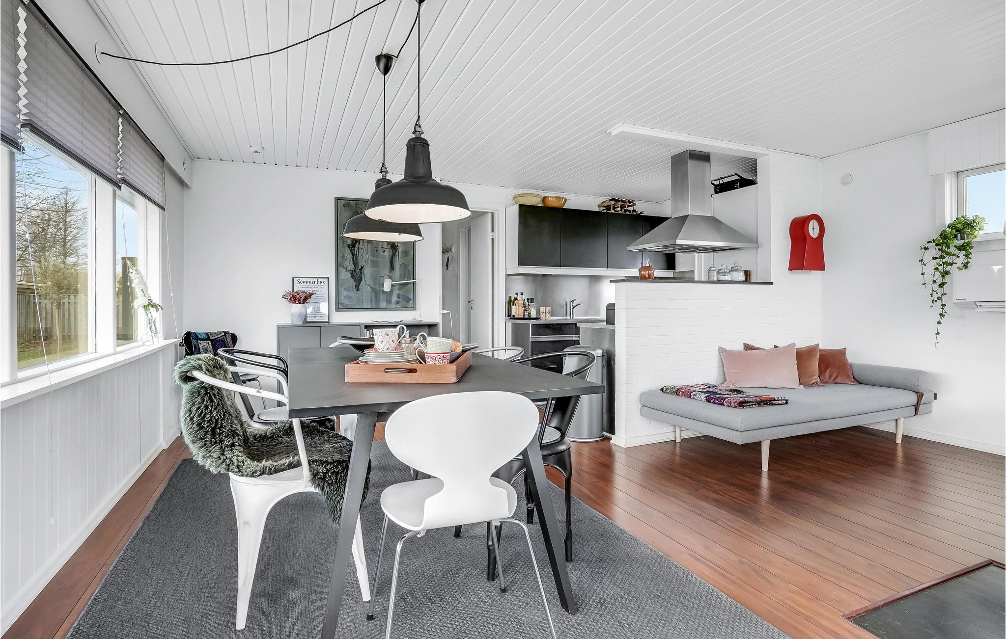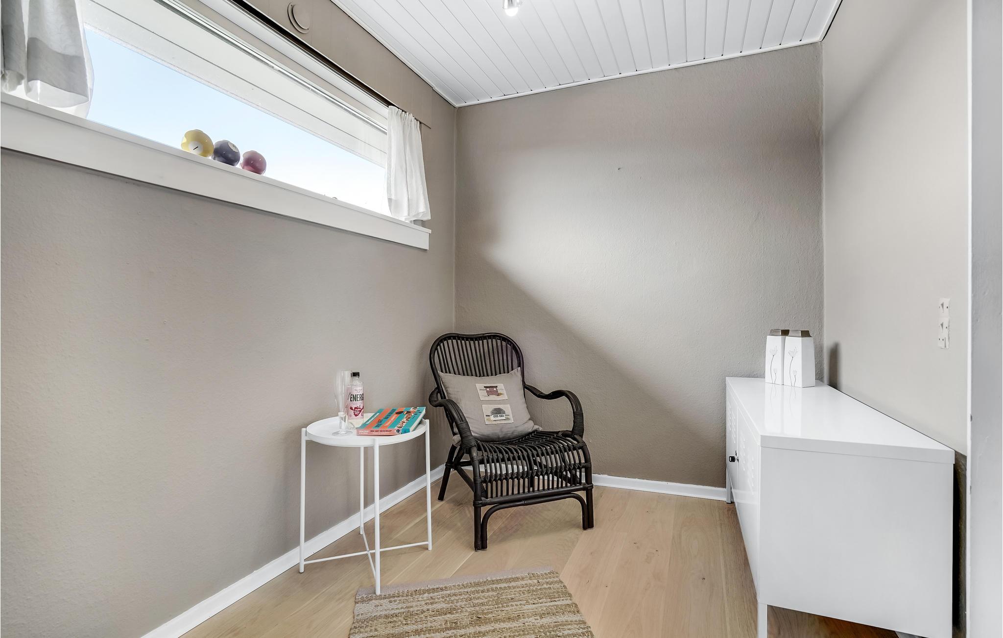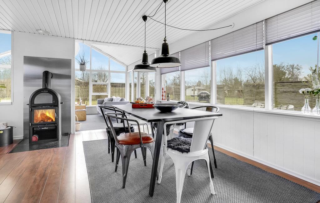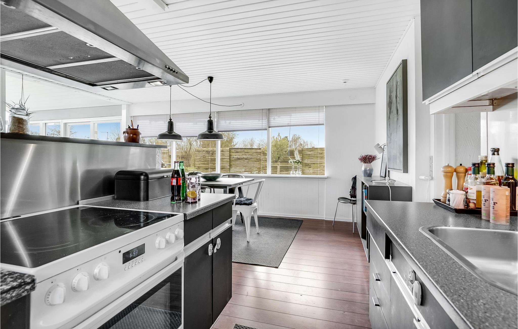 Der er lagt op til nogle herlige dage i det nordfynske, hvor I kan lade batterierne op i dette lækre hus. Her er der lagt vægt på flotte detaljer og gode faciliteter, så det eneste I skal koncentrere jer om er at slappe af og have det rart. I opholdsrummet smelter rammerne indendørs og udendørs næsten sammen, for de store gulv til loft-vinduer sørger for en ubegrænset udsigt til de naturskønne omgivelser. Glæd jer til at dele dagens måltider i det lyse alrum, mens ilden buldrer i brændovnen, eller på terrassen, når solen er fremme.