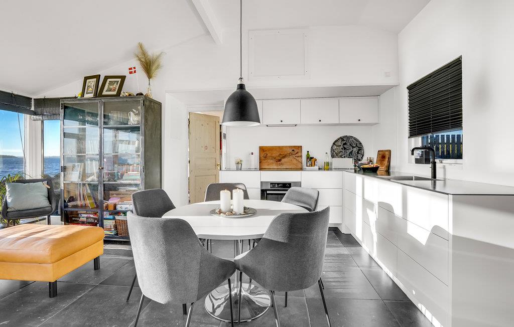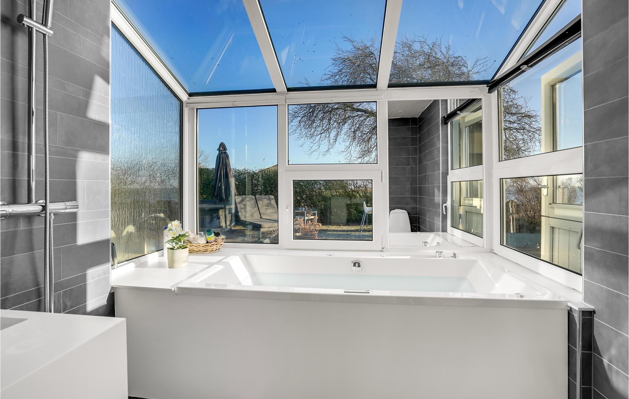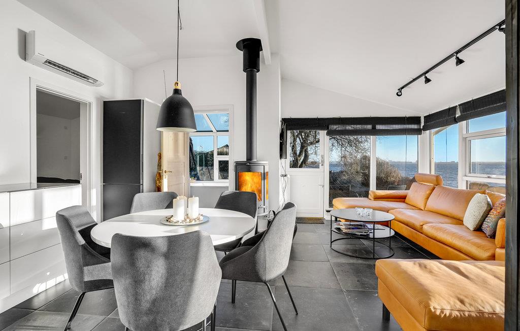 Dette dejlige sommerhus er det perfekte sted at genoplade batterierne fuldstændigt. Huset er lyst, smagfuldt indrettet, og store vinduespartier mod fjorden i husets hjerte - det enestående køkken-alrum - gør, at feriestemningen kommer helt automatisk. Start dagen med en frisk dukkert i fjorden og tilbered derefter en lækker morgenmad, som kan nydes ude eller inde, mens I lader blikket vandre over vandet. Som noget helt særligt tilbyder huset også et dejligt to-personers spabad med udsigt til fjorden gennem vinduerne - det perfekte sted at afslutte en dejlig feriedag.