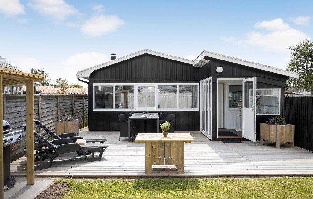 Hyggeligt træhus ved Hasmark Strand med åben terrasse og moderne faciliteter.
