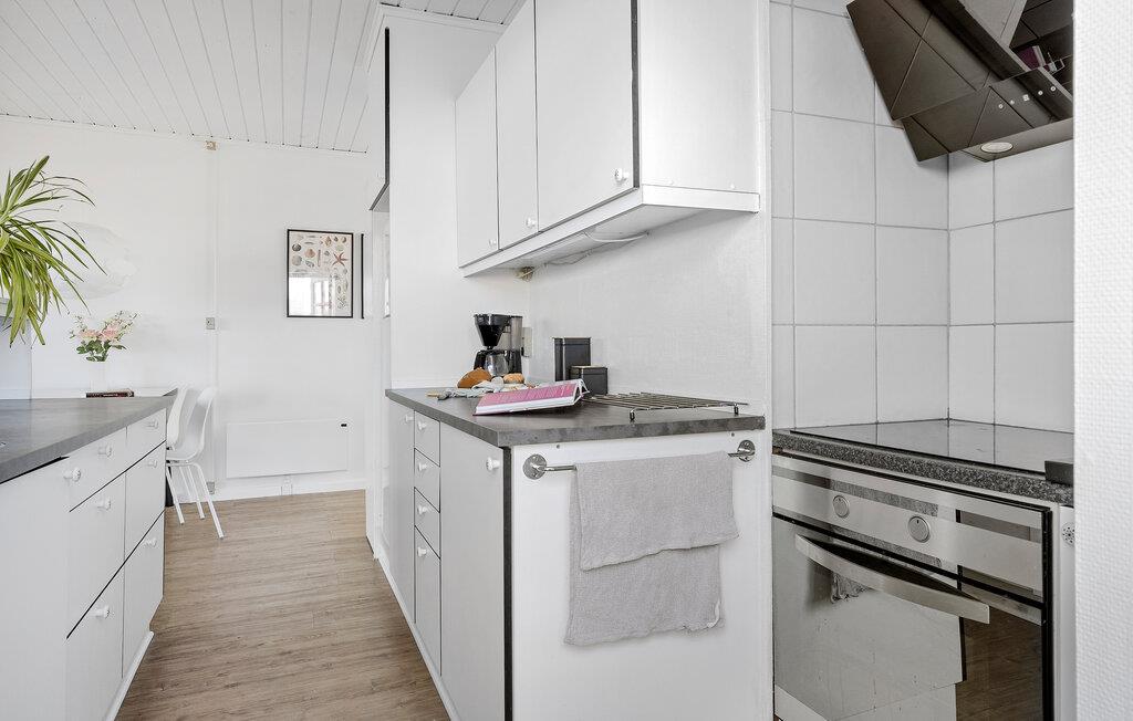 I den første række ned til Hasmark Strand byder dette enderækkehus jer velkommen på en fantastisk strandgrund. Tilbring en afslappende ferie sammen med jeres yndlingsperson i dette lyse og indbydende feriehus. I kan lave mad, slappe af eller spille kort ved bordet i stueetagen. 1. sal tilbyder jer en smuk oase af fred med en stor balkon, hvorfra I kan nyde en storslået udsigt. Om morgenen kan I sidde på balkonen med en kop kaffe og starte dagen med en god bog. Om aftenen kan I nyde jeres måltider på terrassen og lægge planer for den kommende feriedag.