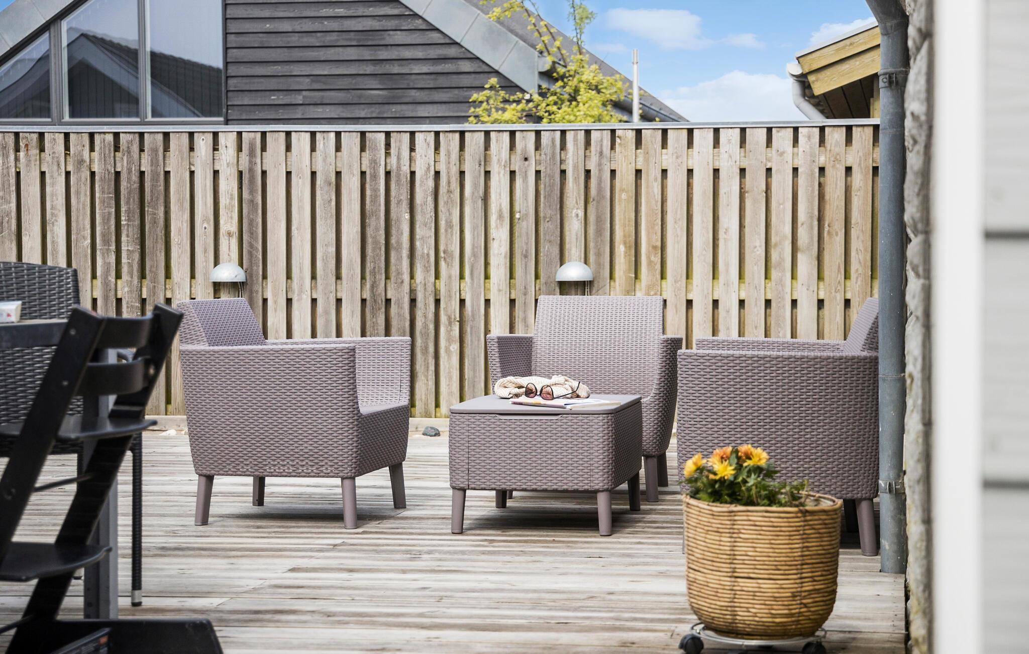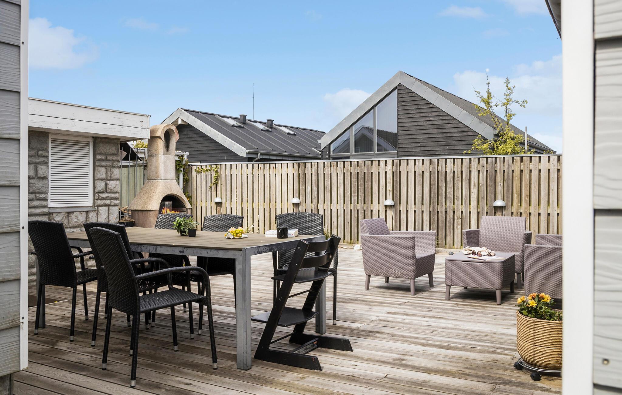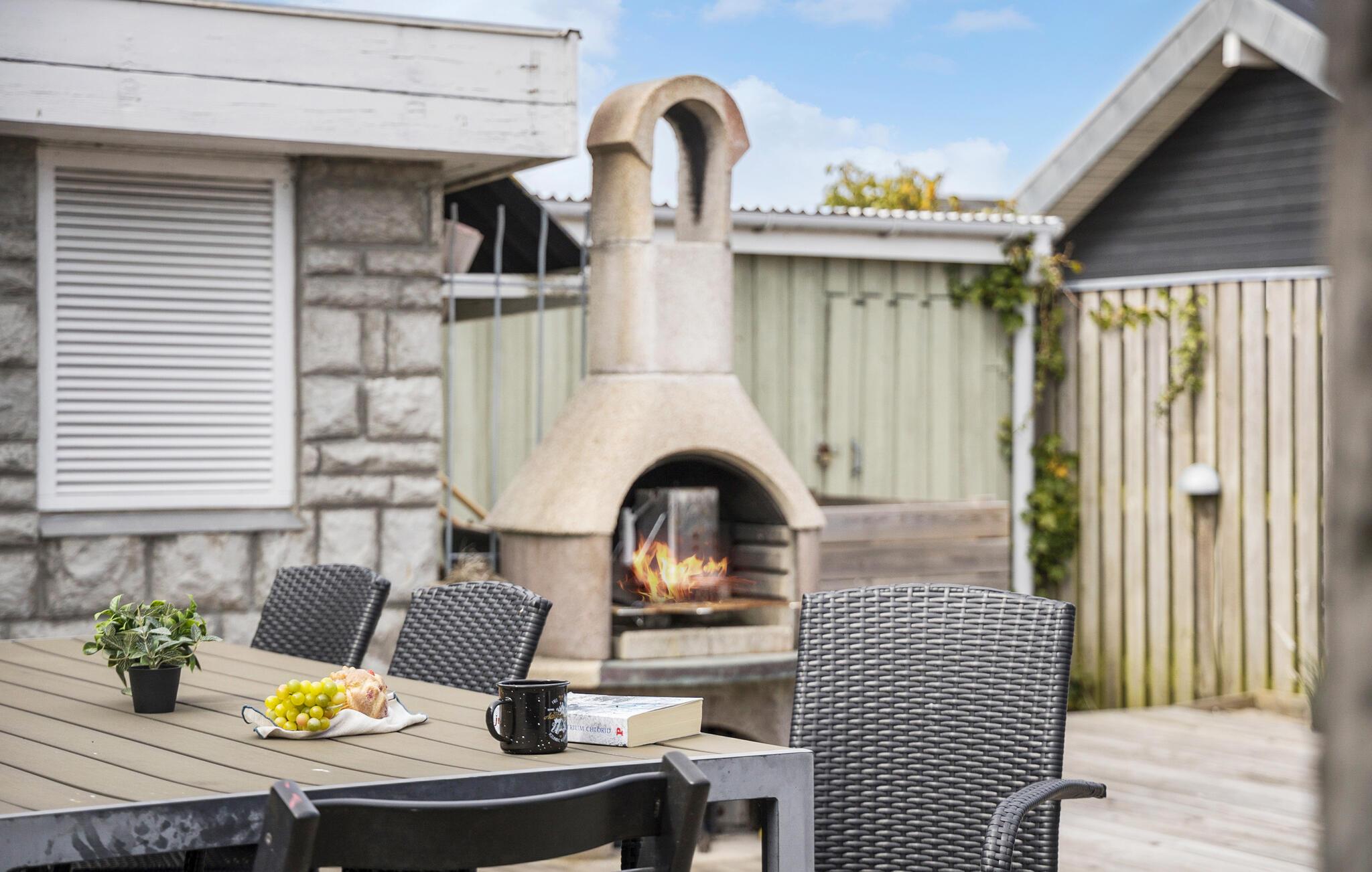 Når solen skinner, kan I nyde den fra morgen til aften på den helt ugenerede træterrasse, der løber rundt om huset. Her kan I også grille og tilberede en lækker pizza i murstensovnen til en lækker aftensmad i det fri.