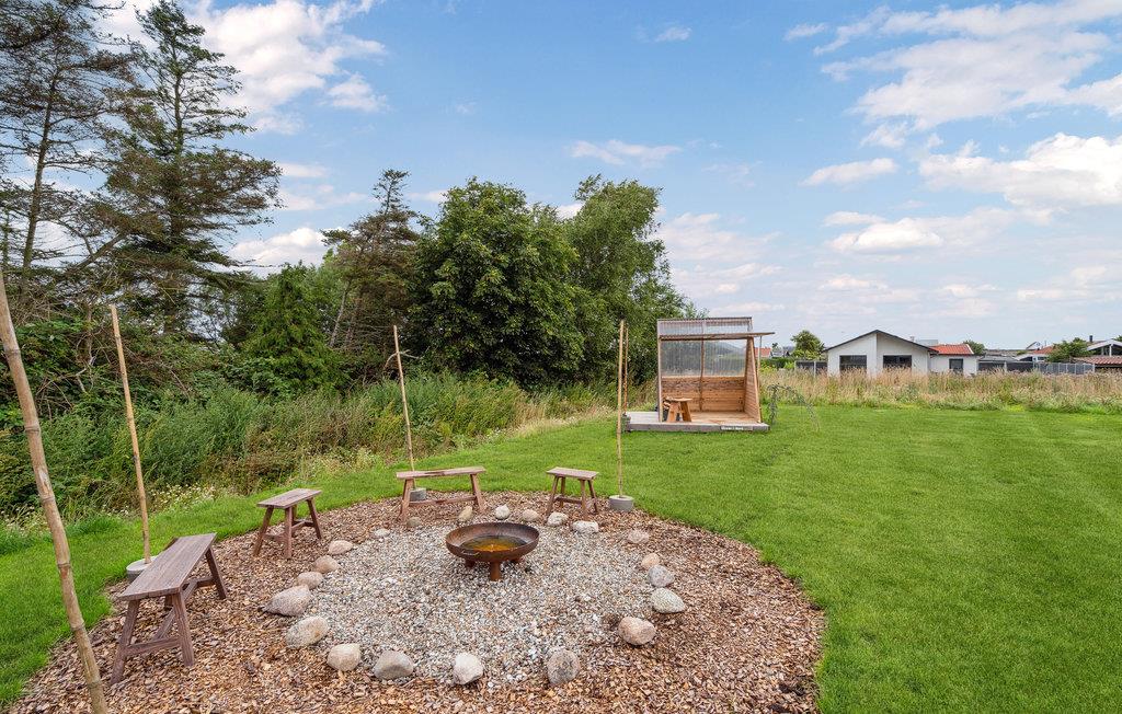 Eksklusivt sommerhus nær Hasmark Strand med moderne faciliteter og hyggelig have.