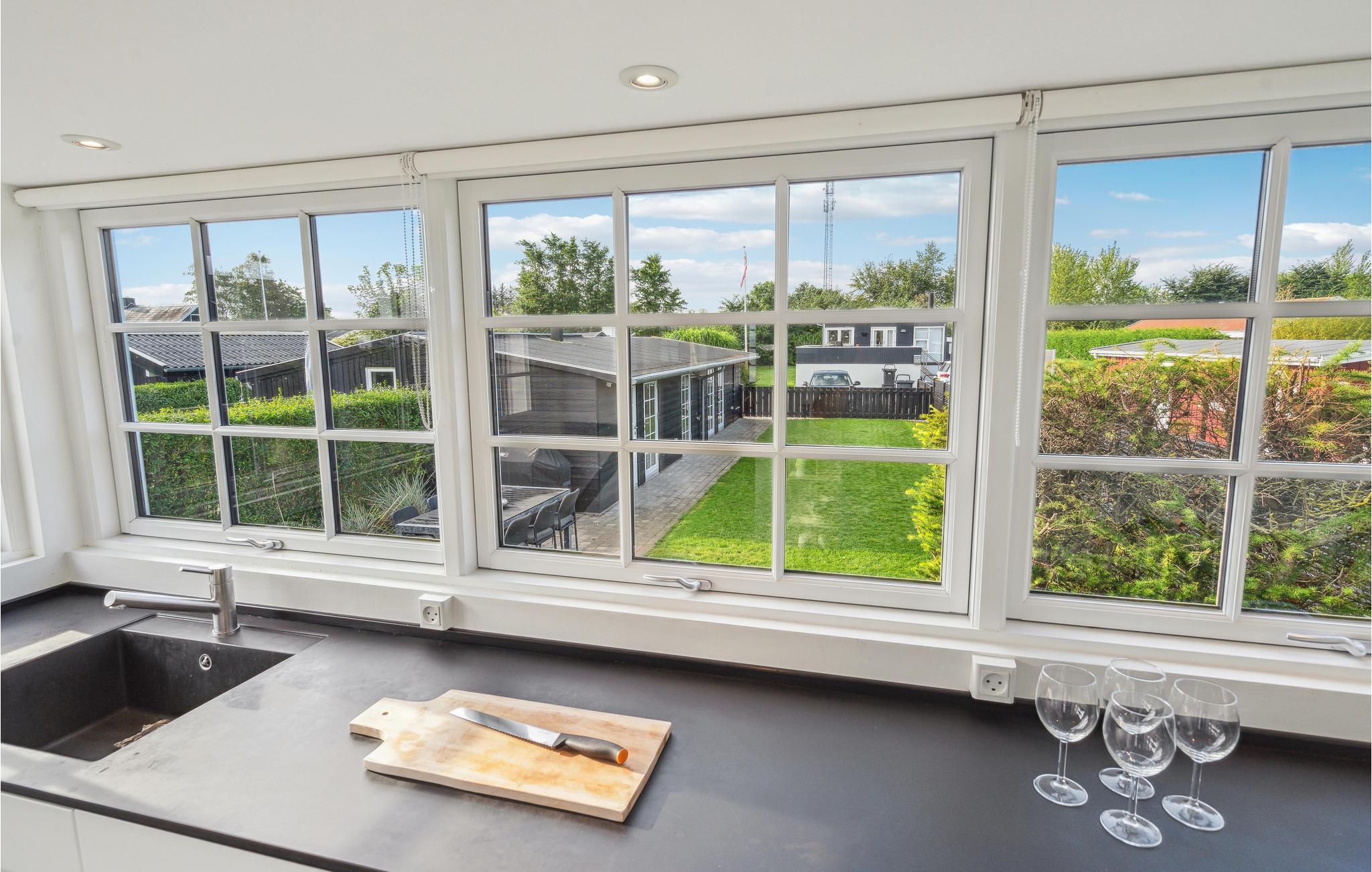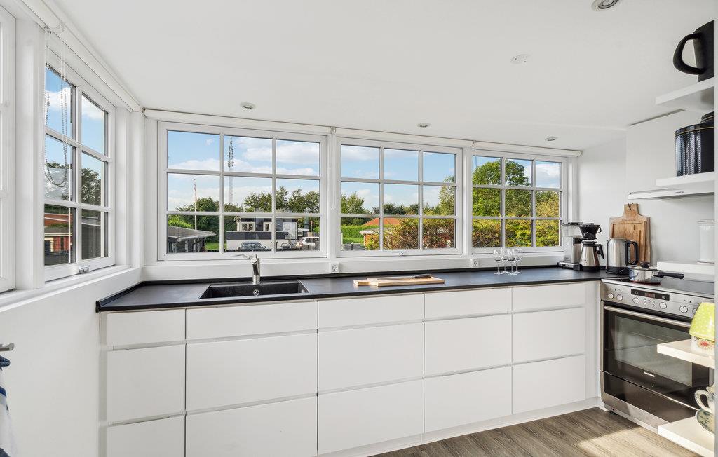 Her er I bogstaveligt talt kun få skridt fra vandet! Nyd et fredfyldt ophold med jeres familie i dette feriehus med moderne og hjemligt indrettede rum og dekorative detaljer som de markante loftsbjælker, der giver kant og skaber en god kontrast til det hvide. De mange store sprossevinduer i opholdsrummet lader dagslyset strømme ind, og det lyse indgyder en ro og harmoni. Afprøv nye opskrifter i køkkenet og hyg jer i sofaen til sent ud på aftenen efter en dejlig dag på stranden. I sommermånederne kan I nyde jeres måltider på terrasserne og drikke dagens første kop kaffe under åben himmel, mens I lader blikket vandre ud over havet. Loungemøblerne danner rammen om en dejlig pause fra vandet om eftermiddagen. I løbet af dagen kan I bade i dejlige Kattegat eller gå lange ture i det bløde sand.