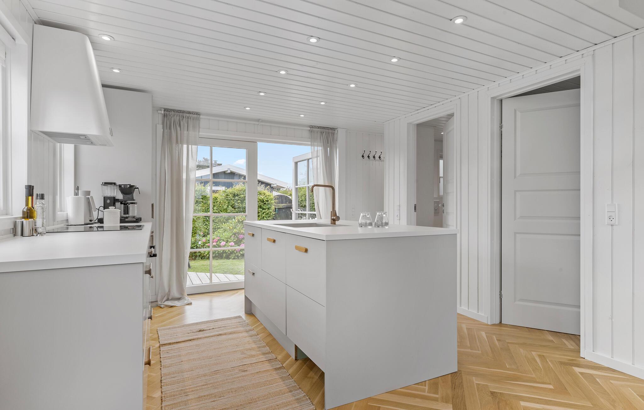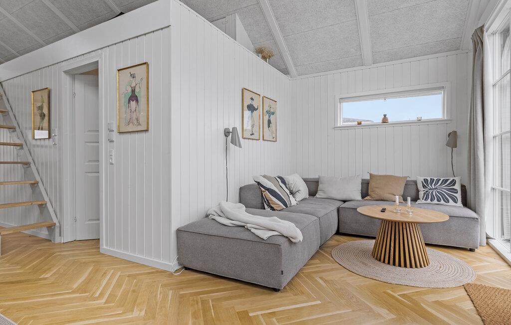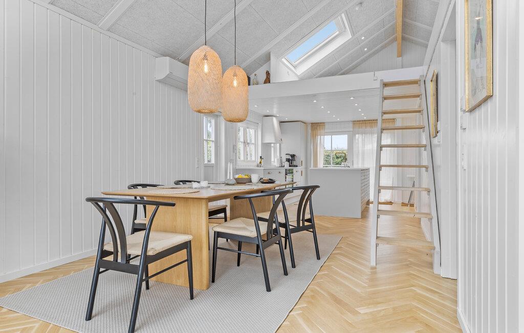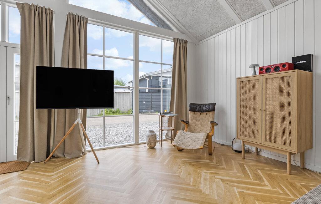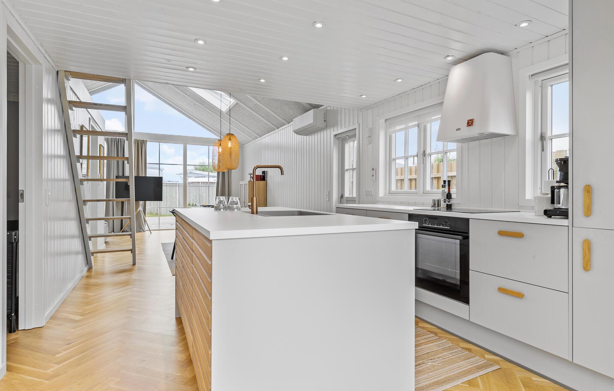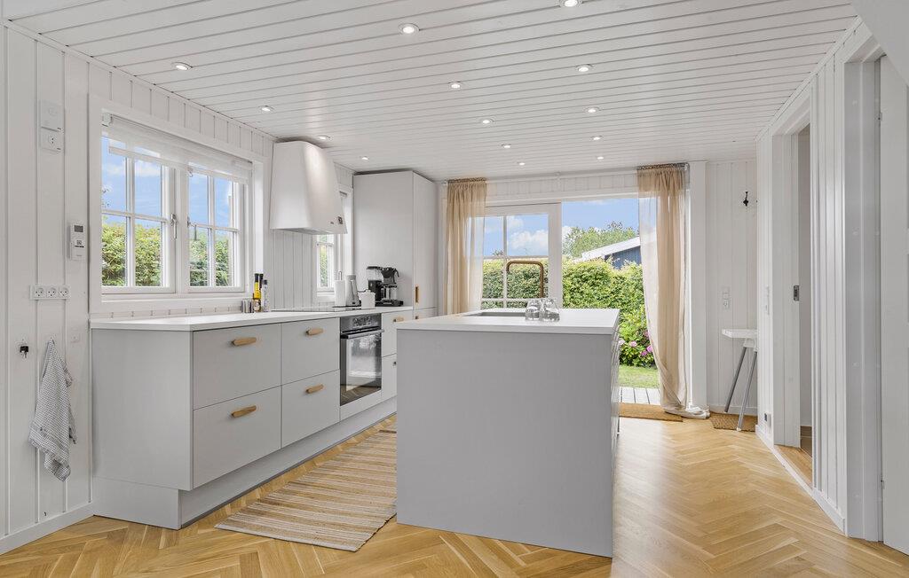 Tag på ferie i dette sommerhus, som har afslapning og komfort i fokus. Her lyst og moderne indrettet med komfortale møbler. I sofaen kan I svinge benene op og nyde udsigten gennem de store vinduespartier, eller se en god film på tv’et. Når sulten nærmer sig, kan I lave mad i det flotte og åbne køkken.