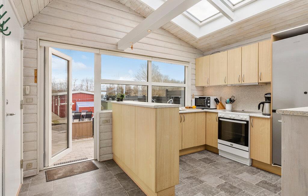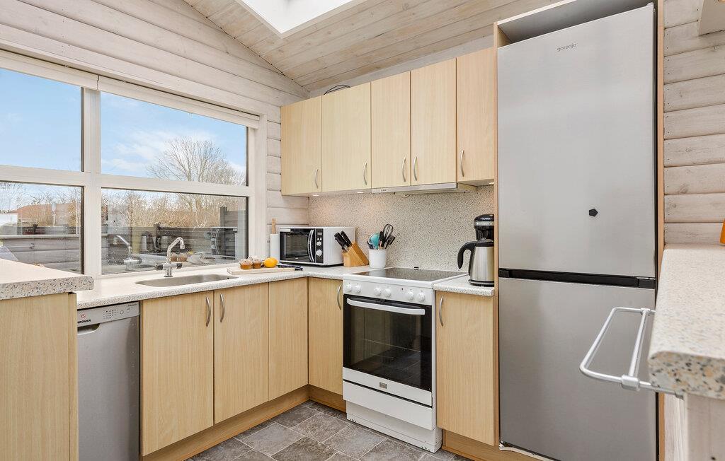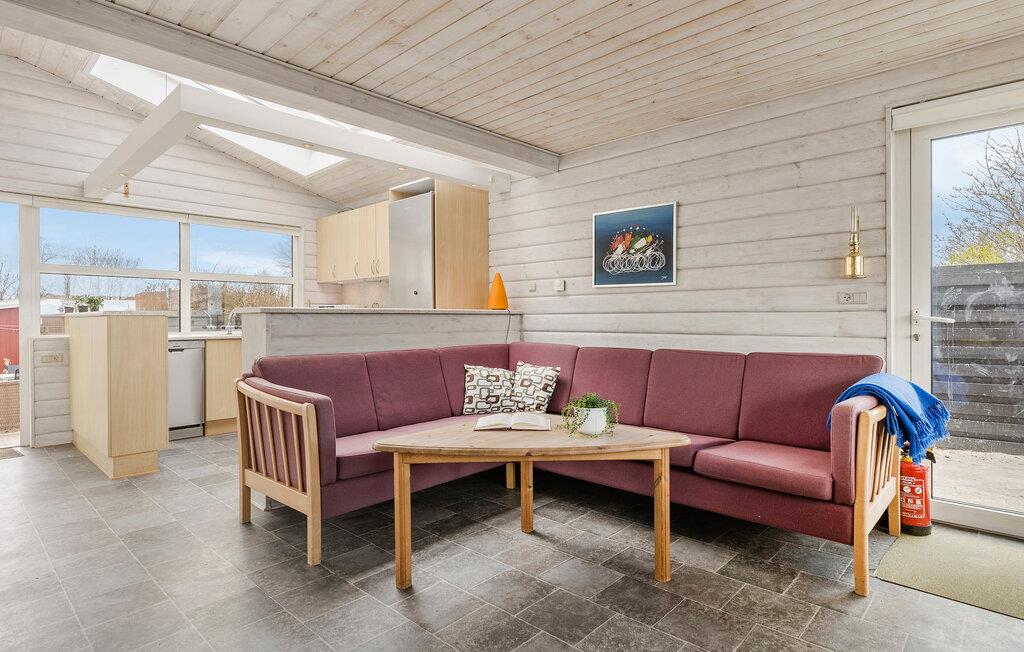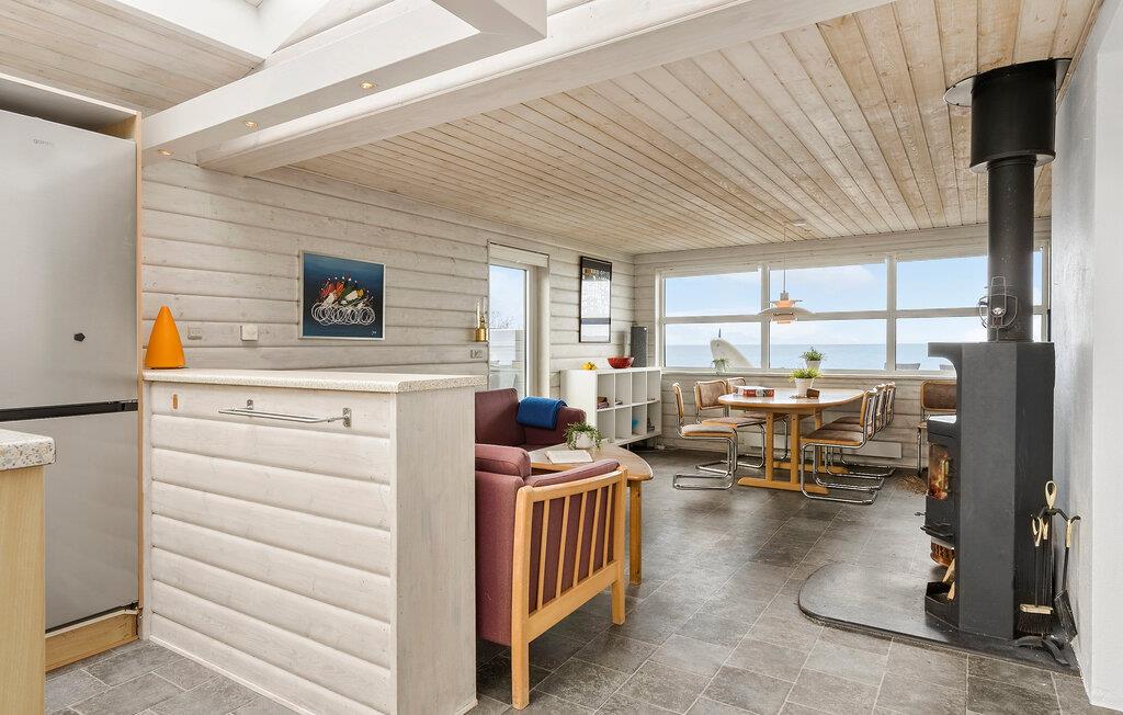 Hvis I går og drømmer om en ferie med havet lige for jeres fødder, er I kommet til det helt rette sted. Dette indbydende hus ligger nemlig lige ved den populære Hasmark Strand på med en fantastisk panoramaudsigt over Storebælt. Indvendigt emmer det af hygge med gennemgående træpaneler, der sammen med det åbne boligkoncept og de store vinduespartier giver de bedste rammer for at kunne slappe af og hvile stængerne med udsigt til det blå. Tænd op i brændeovnen på de køligere dage og lav noget god mad, som I kan nyde ved spisebordet, inden I runder dagen af med brætspil eller en god film i sofaen.
