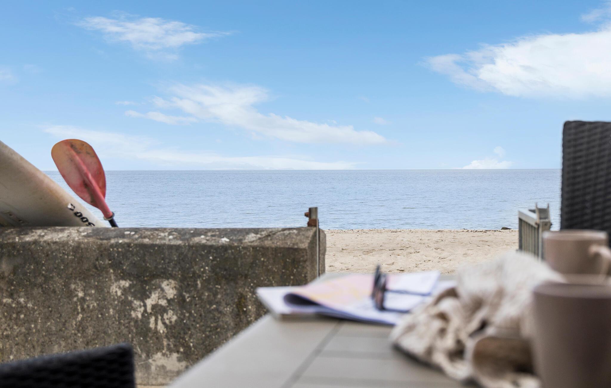 Om morgenen kan I spise morgenmaden på en af ??de to terrasser, hvor I kan finde sol, skygge og læ efter behov i løbet af dagen. Bag huset kan I tænde op i grillen og servere nogle saftige bøffer under den lune aftensol, og foran huset kan I bogstaveligt talt høre bølgerne skvulpe, mens I hygger jer med en god bog eller et krydsord.