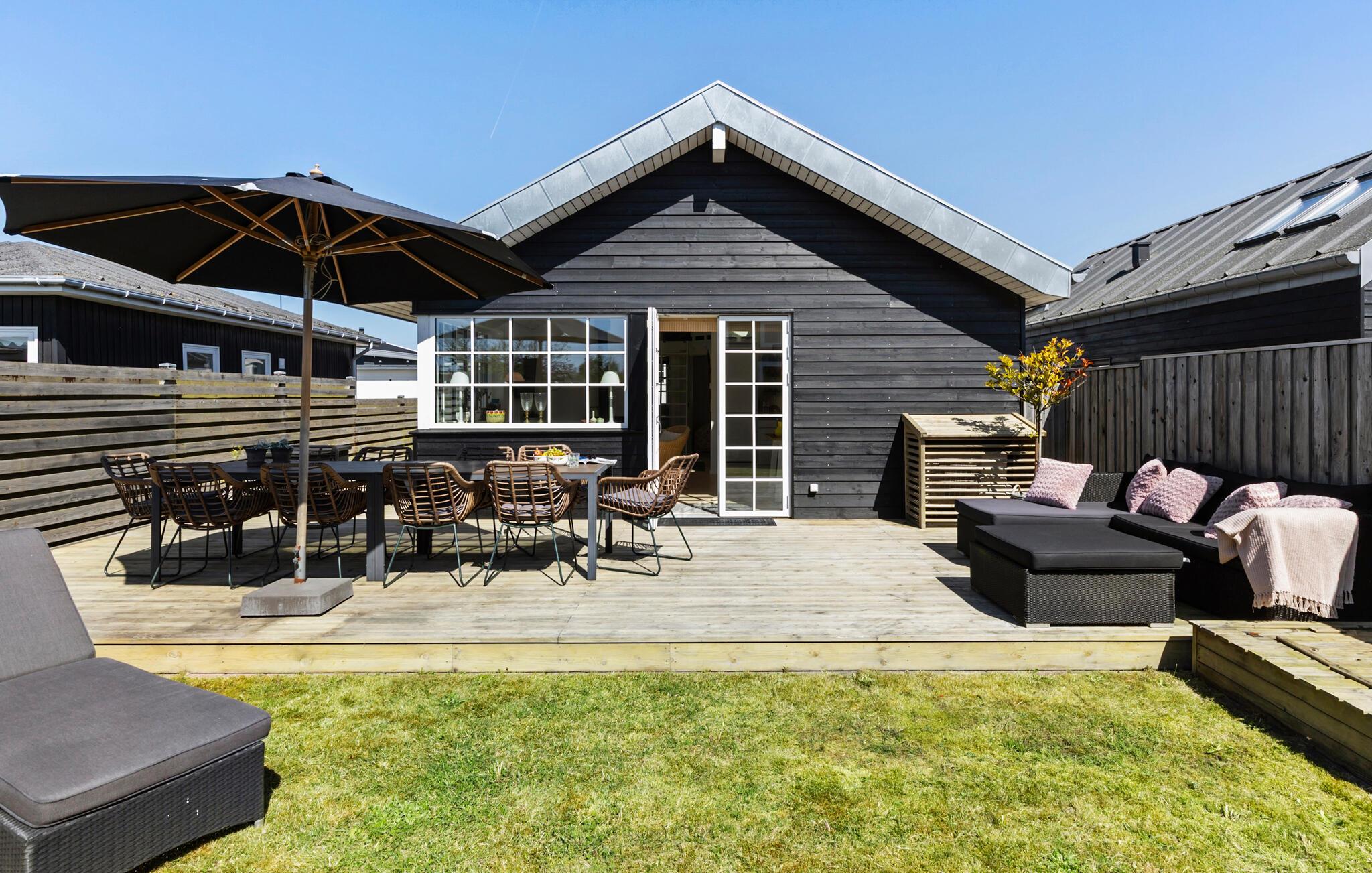 Stilfuldt feriehus tæt på Hasmark Strands fine sandstrand med moderne komfort og stor terrasse.