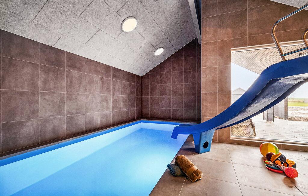 Eksklusivt feriehus i Hasmark Strand med pool, sauna, aktivitetsrum og tæt på stranden.