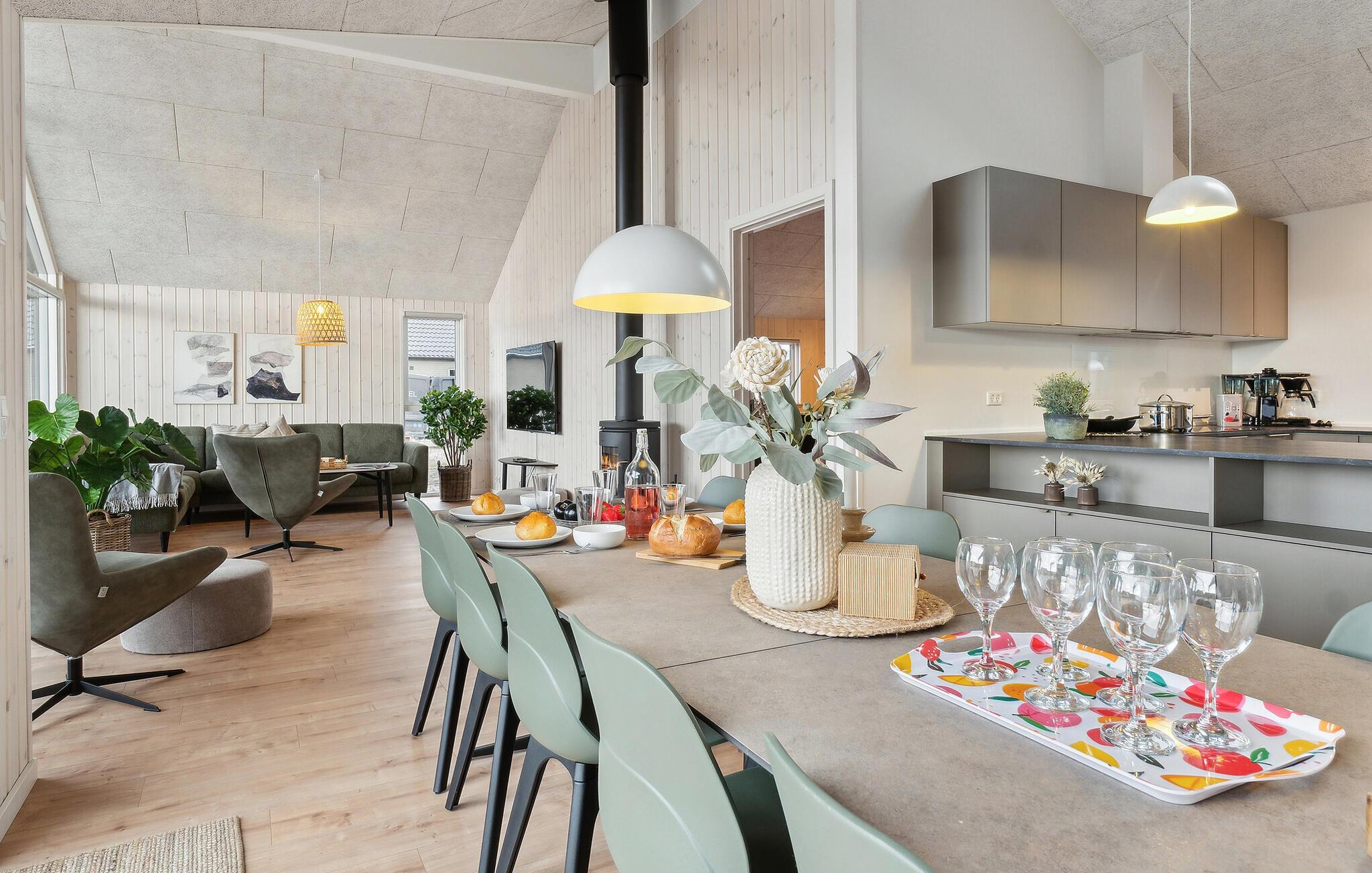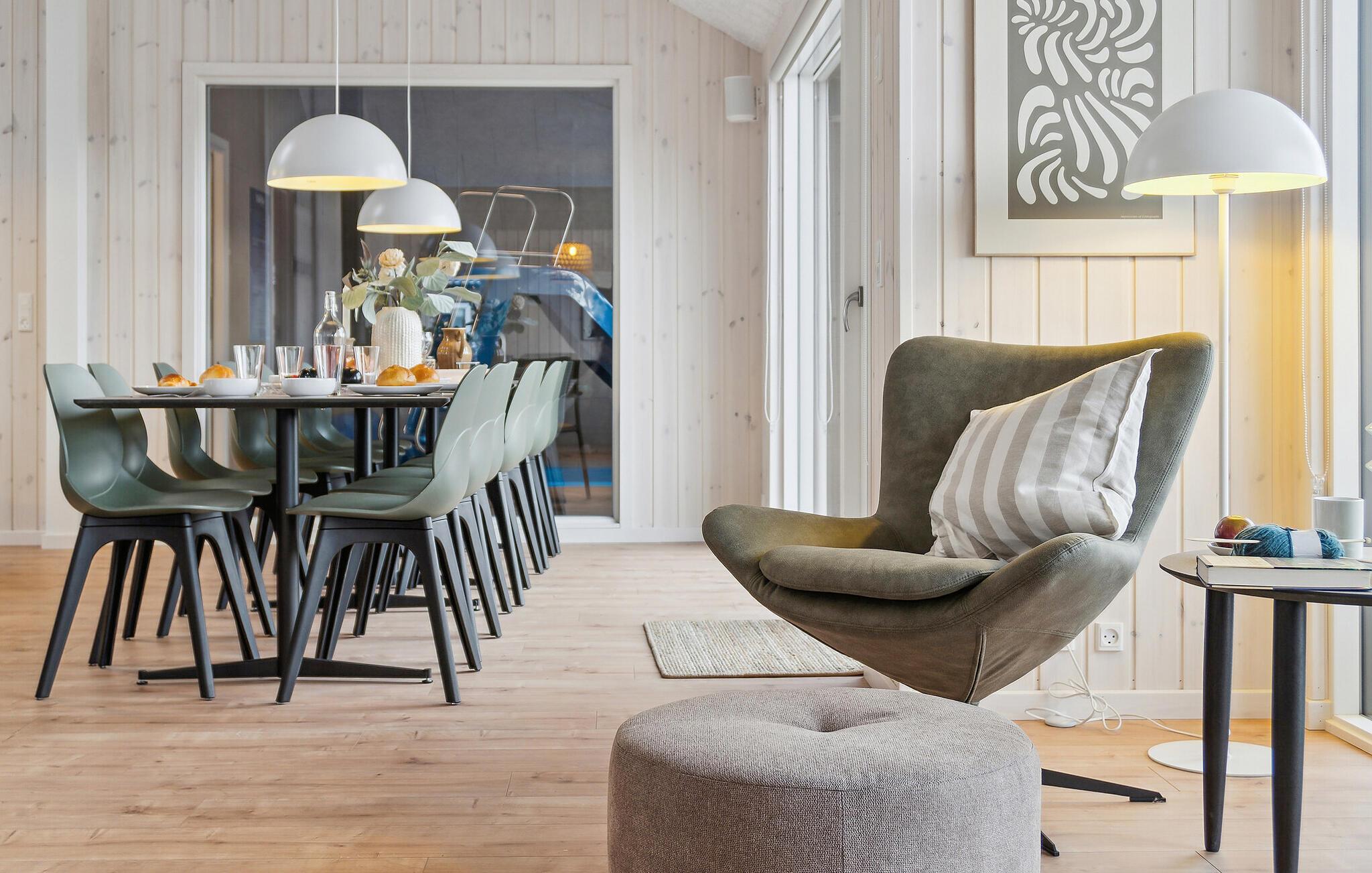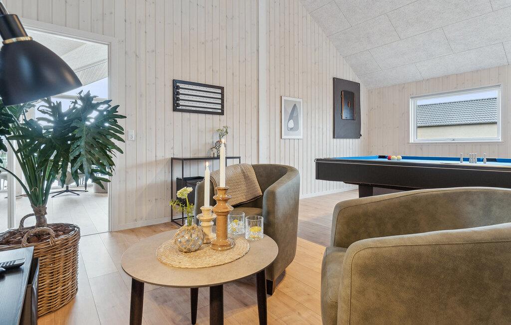 Det indre af dette sommerhus byder jer velkommen med et moderne design og rummelige, lyse værelser. Føl jer godt tilpas i den smagfuldt indrettede stue med en god film, spil billard eller bordtennis og forkæl jer selv med afslappende timer i den hyggelige atmosfære i jeres indendørs pool. Tilbered kulinariske delikatesser sammen i køkkenet af høj kvalitet.