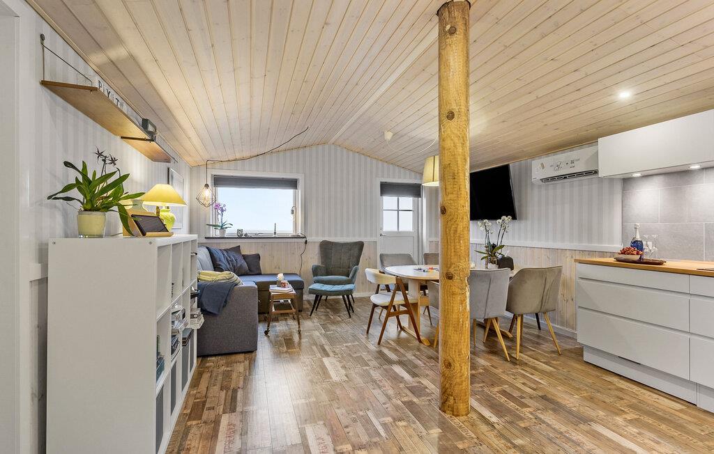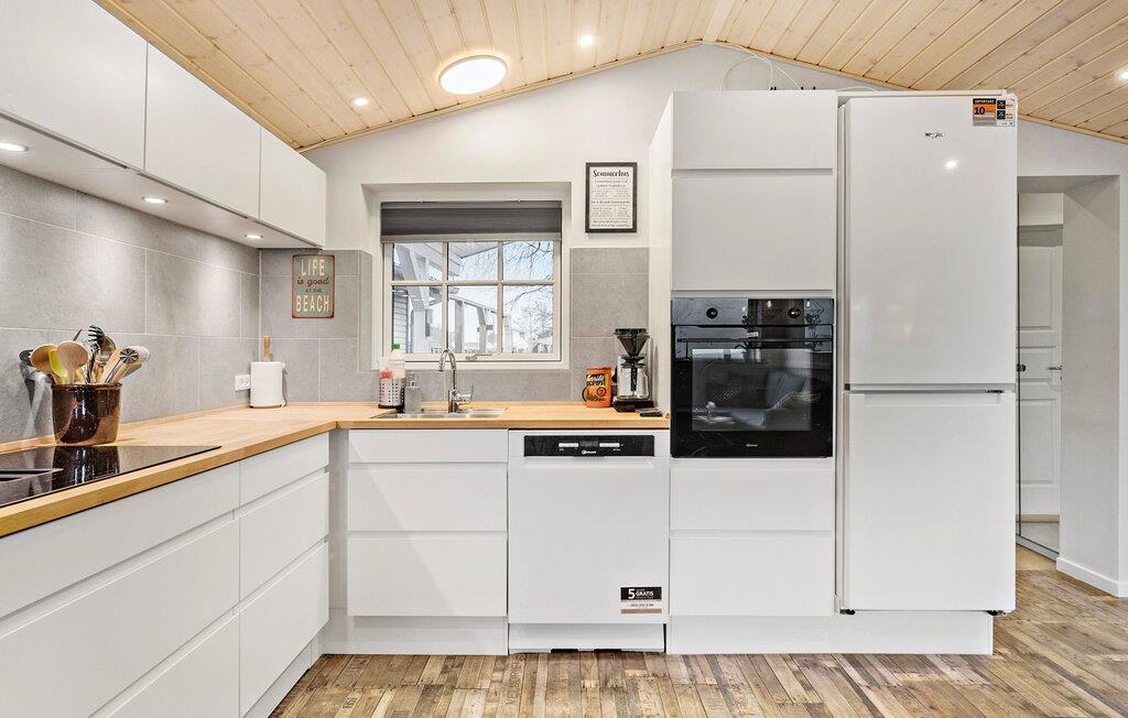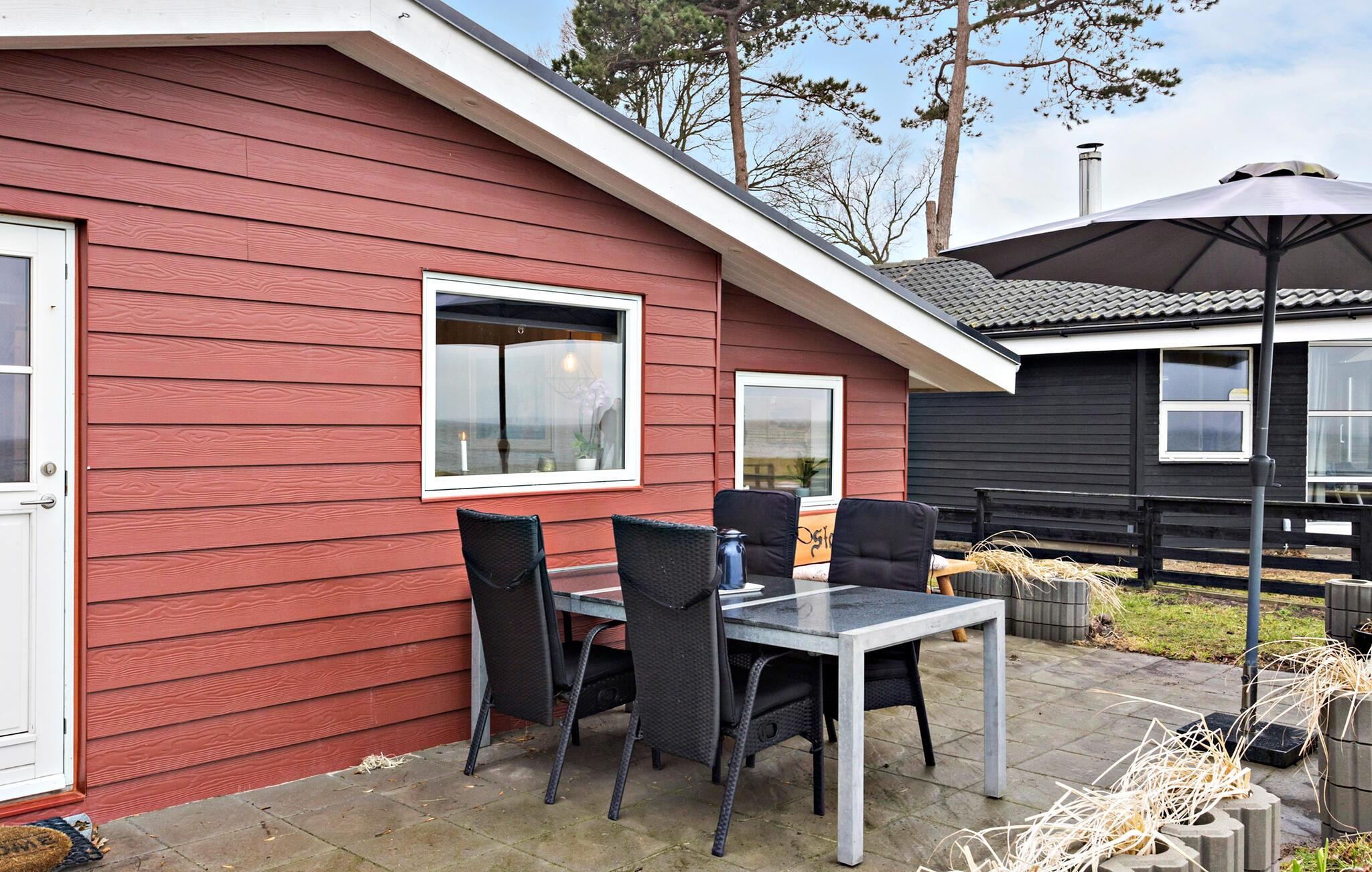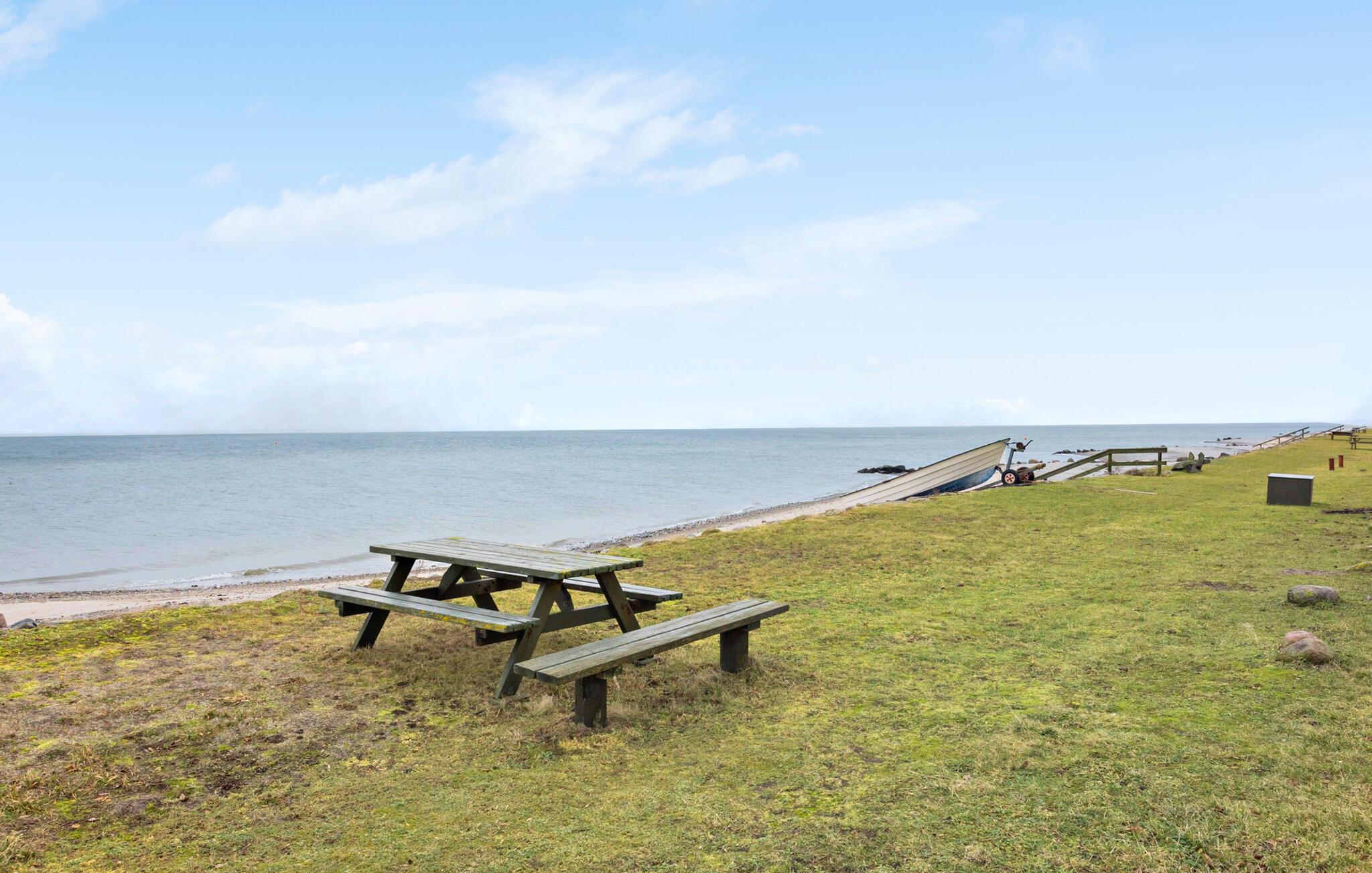 Se frem til årets dejligste ferie i dette charmerende hus, der har en fantastisk beliggenhed lige ved stranden. Indretningen er særdeles hyggelig med fremtrædende træelementer og en åben planløsning, der forener stue og køkken i ét rum og garantere mange dejlige stunder med klassisk feriehygge. Tag jer god tid til madlavningen i køkkenet, læg puslespil ved spisebordet og nyd en god kop kaffe i solen på terrassen foran huset med en smuk udsigt til havet.