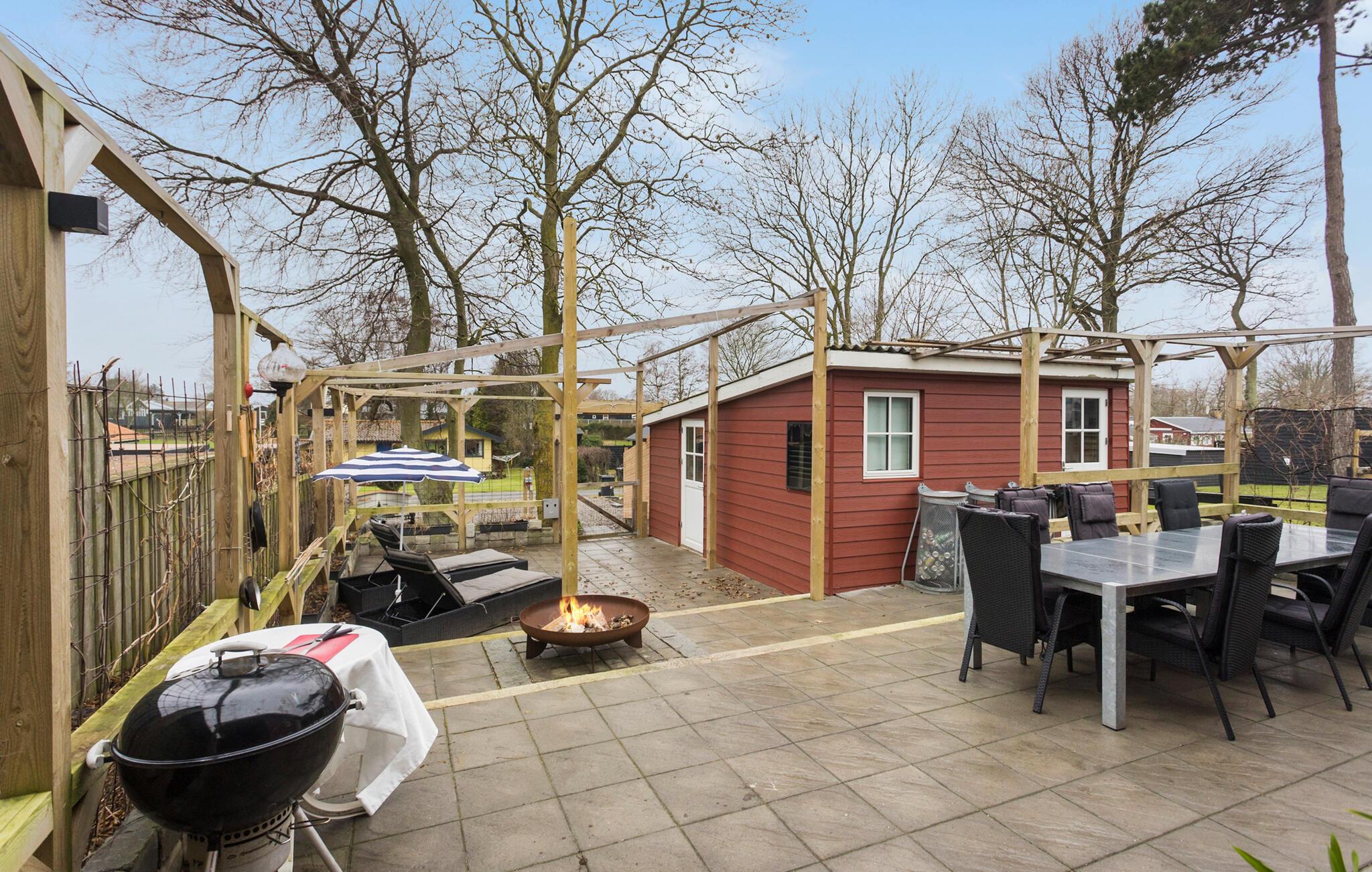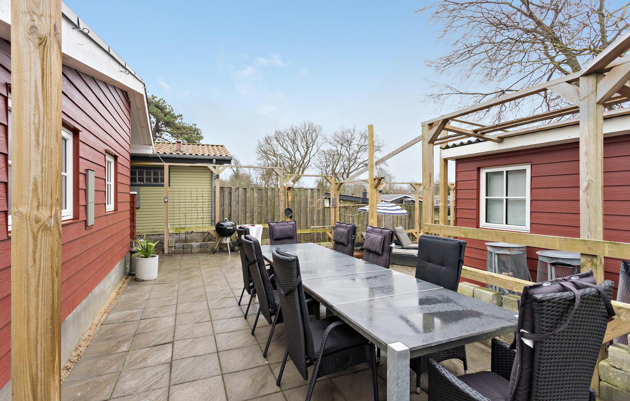 Bag huset finder I det omfattende terrasseområde, hvor I har masser af privatliv og en dejlig grill, hvor I kan tilberede jeres livretter og lade en skøn feriedag gå på hæld med en kølig drink.
