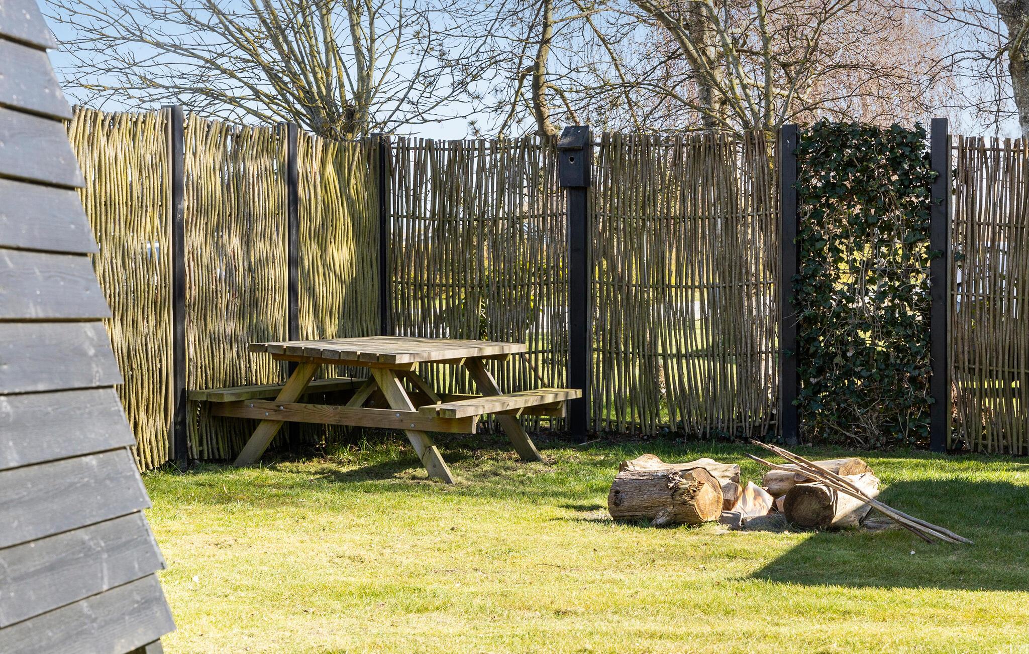 Brug den rummelige træterrasse til morgenmad i morgensolen, eller slap af på liggestolene. Hold øje med børnene, mens de leger på græsplænen eller tumler i legetårnet med rutsjebane. Det indhegnede område beskytter jeres firbenede venner. Tænd bål om aftenen, og afslut dagen med snobrød og hyggelige samtaler. I haven står også et shelter klar til brug.