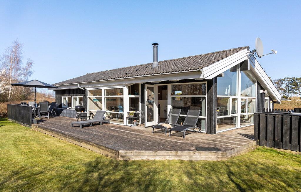 Luksus feriehus ved Hasmark Strand med sauna, spabad, børnevenlig have og shelter.