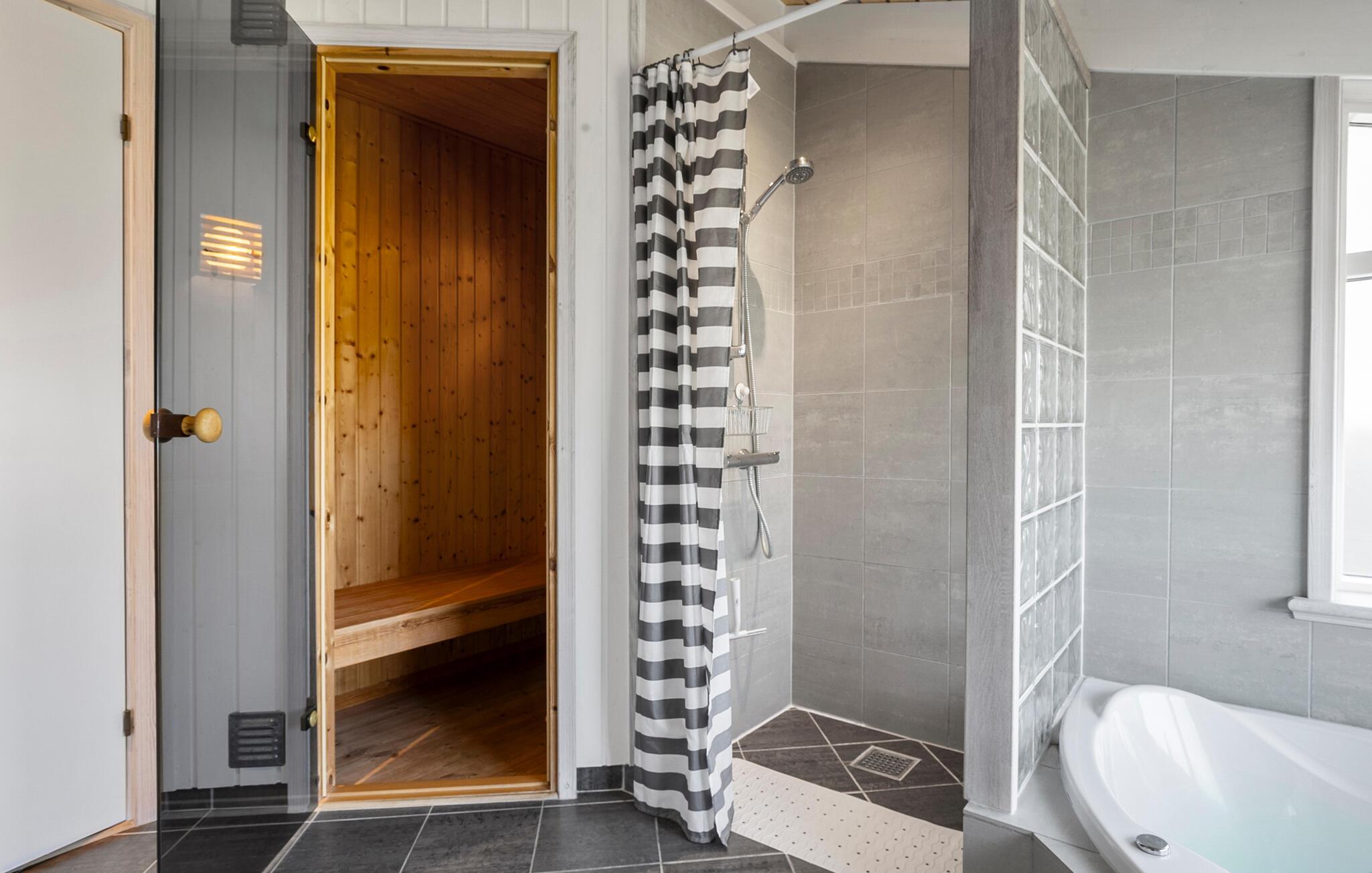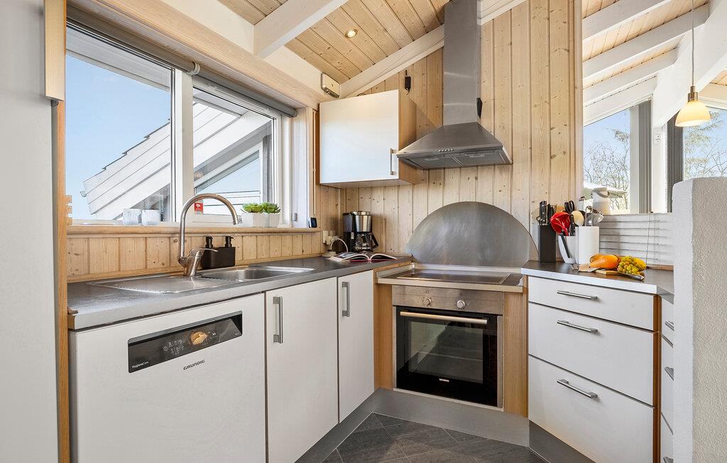 Hyg jer i den lyse opholdsstue, hvor de store vinduespartier lukker masser af lys ind og skaber en venlig atmosfære. Læn jer tilbage i hjørnesofaen, nyd udsigten til haven, eller læs en bog ved brændeovnen. Planlæg jeres udflugter ved spisebordet, og tilbered måltiderne i køkkenet helt uden stress. Jeres egen wellnessafdeling med sauna og spabad indbyder til afslapning om aftenen.
