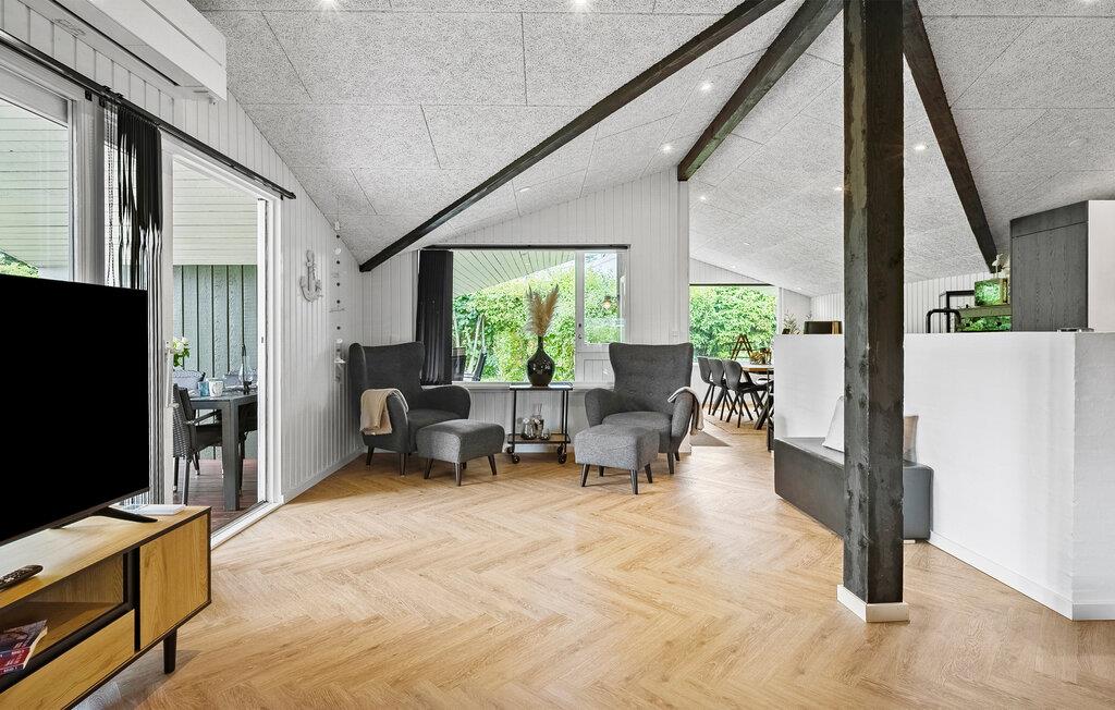 Dette ultramoderne feriehus ligger kun nogle få skridt fra den skønne sandstrand i Hasmark. Huset emmer af feriestemning og lækre indretningsløsninger samt adskillige herlige ekstrafunktioner, der vil gøre jeres ferie helt særlig. Glæd jer til hyggelige måltider i spisestuen, som har udsigt over haven, lyt til den knitrende ild, mens I spiller spil stream en god serie eller få jer en god snak i de komfortable sofaer, mens I nyder et glas vin.