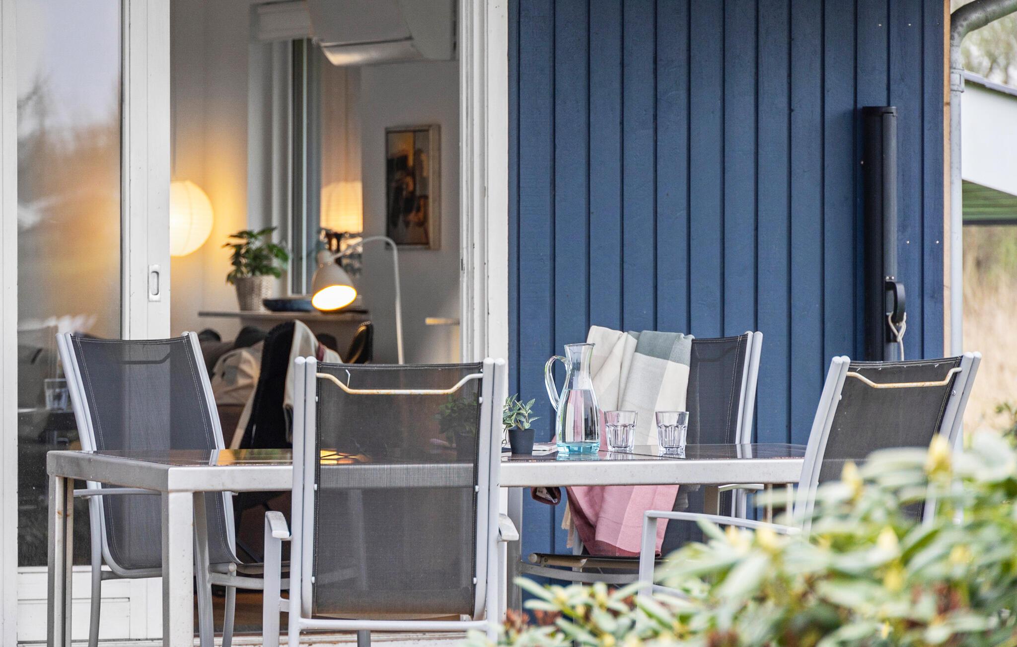 Hyggeligt feriehus tæt på Hasmark Strand med to terrasser, brændeovn og dejlige lysindfald.