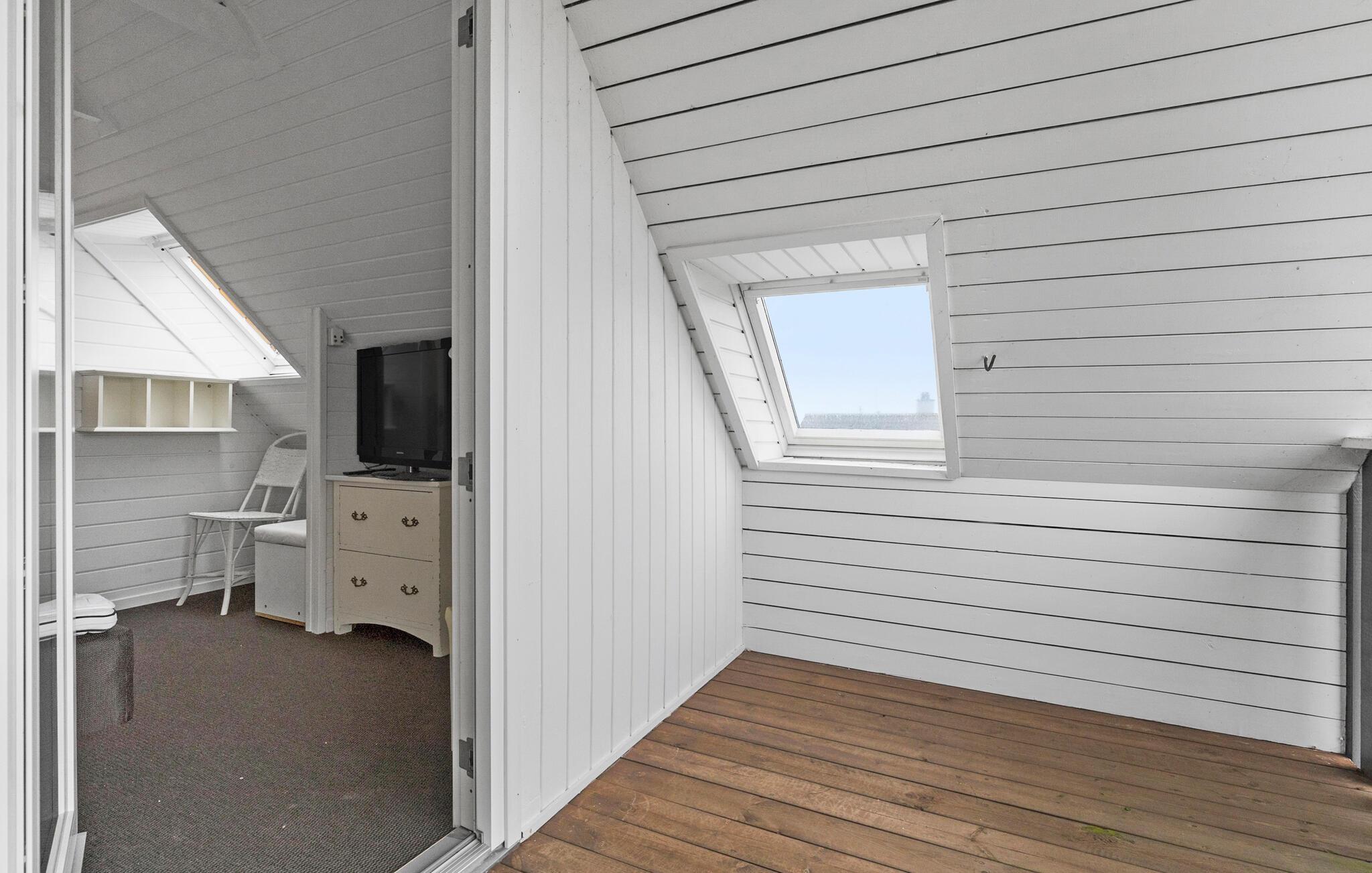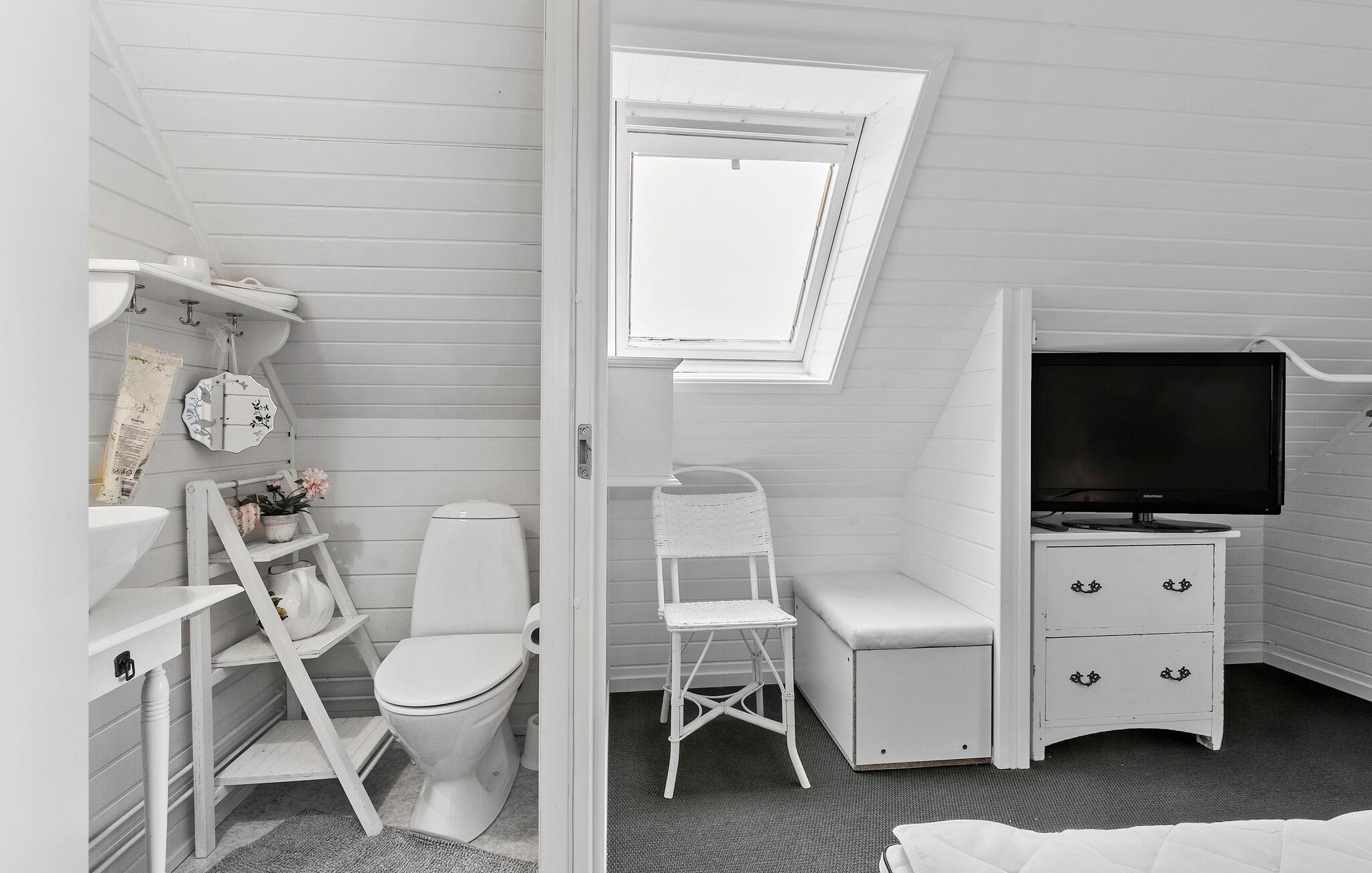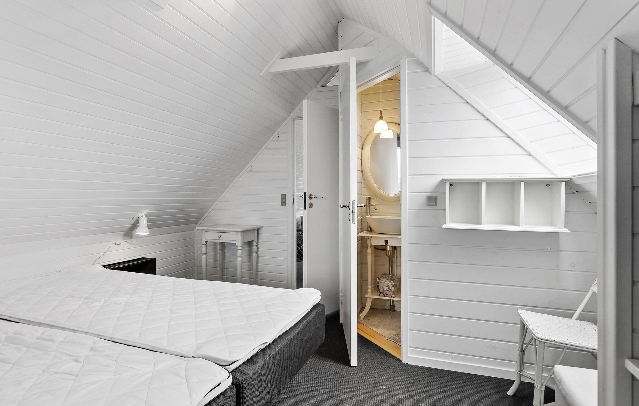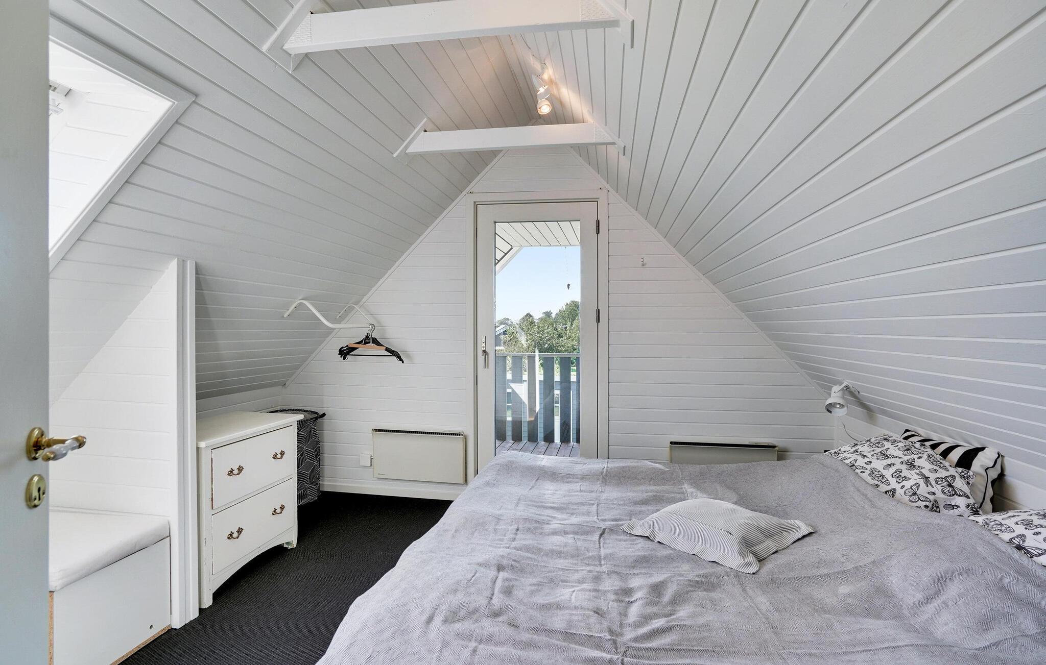 Udenfor er der en stor træterrasse med komfortable havemøbler og liggestole. Læn jer godt tilbage, mens I nyder den direkte udsigt over vandet. Den velholdte have byder på god plads til fritidsaktiviteter og lægger op til afslappede grillaftener. På sandstranden kan I tage morgenture eller snuppe en frisk dukkert i havet.