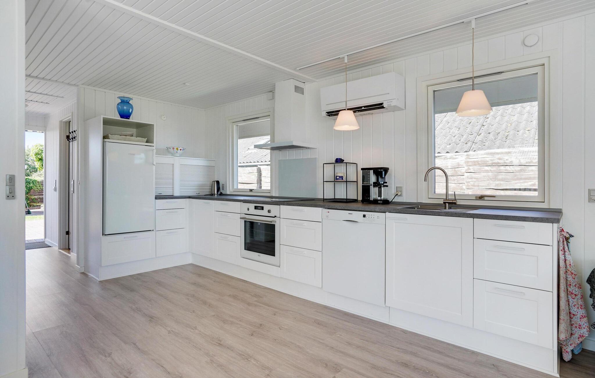 Glæd jer til jeres næste ferie i dette charmerende hus ved Jørgensø Strand på Nordfyn. En dejlig blanding af moderne komfort og afslapning tæt på naturen venter jer her. Husets indretning er noget særligt med sin lyse og venlige indretning i skandinavisk stil. Den åbne stue og spisestue lægger op til hyggeligt samvær med store vinduespartier, der giver udsigt over havet. Læn jer tilbage i den komfortable sofa eller nyd hyggelige måltider ved det store spisebord. Det moderne køkken byder på alt, hvad I skal bruge til at tilberede lækre retter. Ovenpå er der en hyggelig lounge med udgang til altan, hvor man kan se solnedgangen.