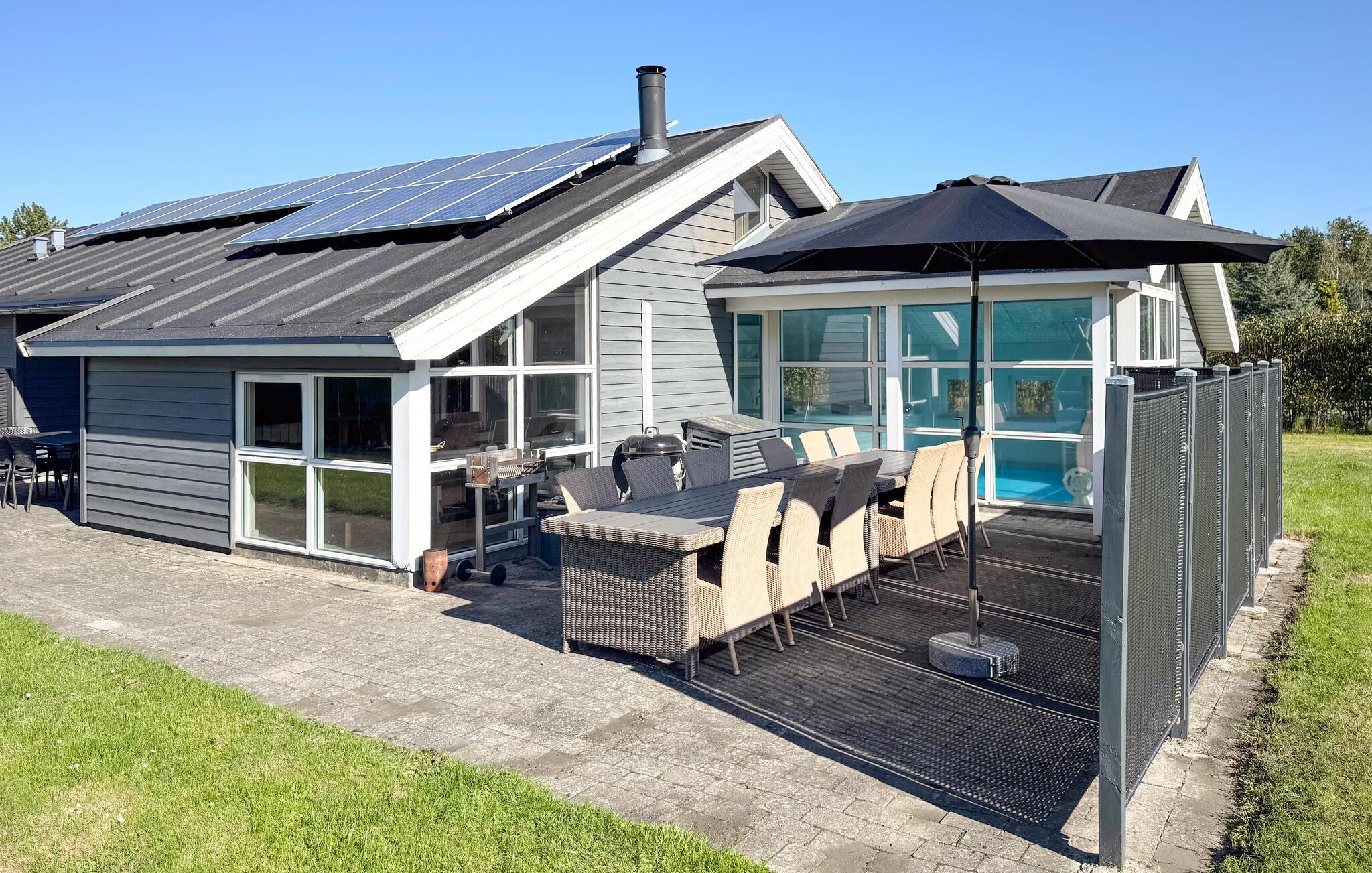 Nyd et rummeligt sommerhus med pool nær Hasmark Strand, perfekt til familieferie og udendørs aktiviteter.
