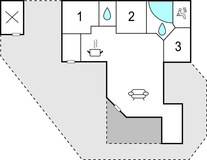 Soveværelse 10m2 (nr. 1) - 1 Soveplads. (Enkeltseng(e)). 2 Sovepladser. (Dobbeltseng(e)).