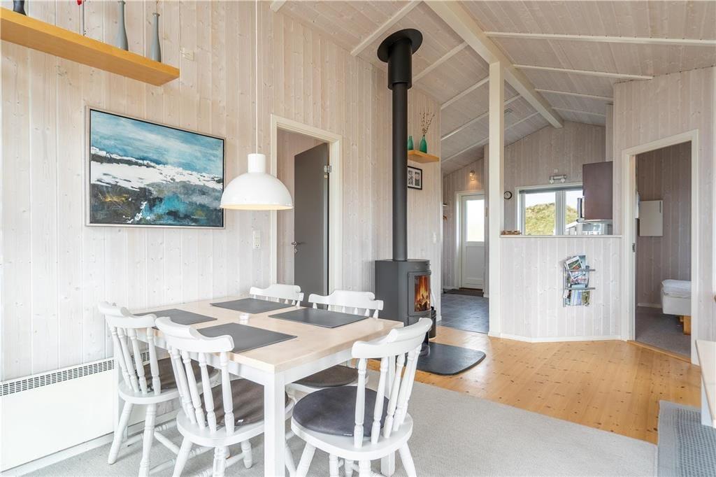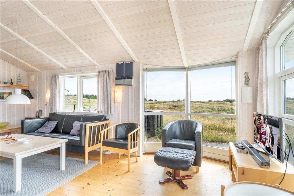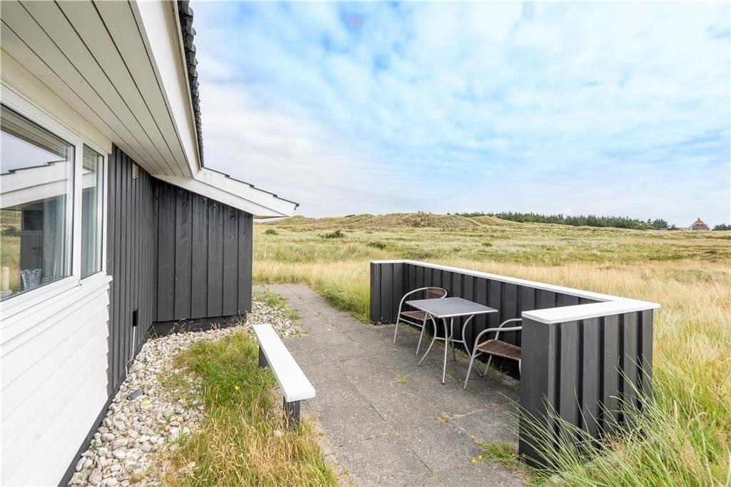 I stuen kan I lade jer betage af udsigten til det smukke klitlandskab omkring feriehuset, men synet kan også nydes på terrassen, der er sydvendt og har sol dagen lang. Her er god plads til solsenge og et terrassebord, og morgenkaffen kan nydes på en lille østvendt terrasse. Ejendommen omkranses af en parkeringsplads til flere biler, og her er sandkasse til de mindste.