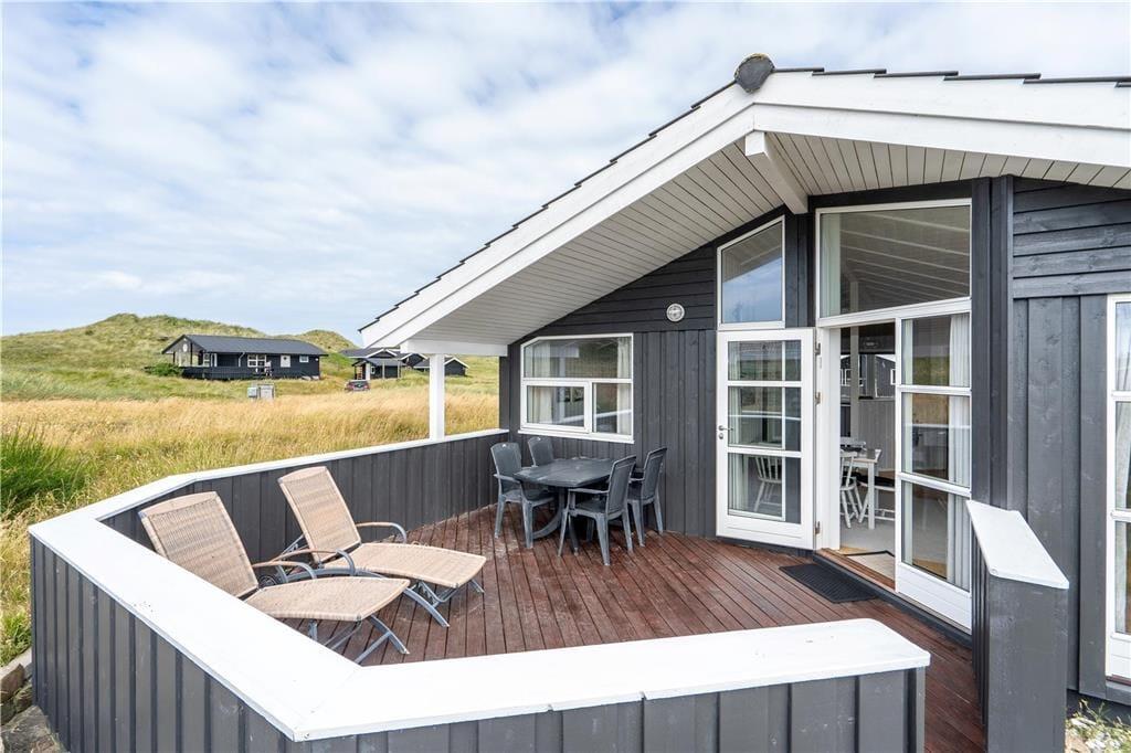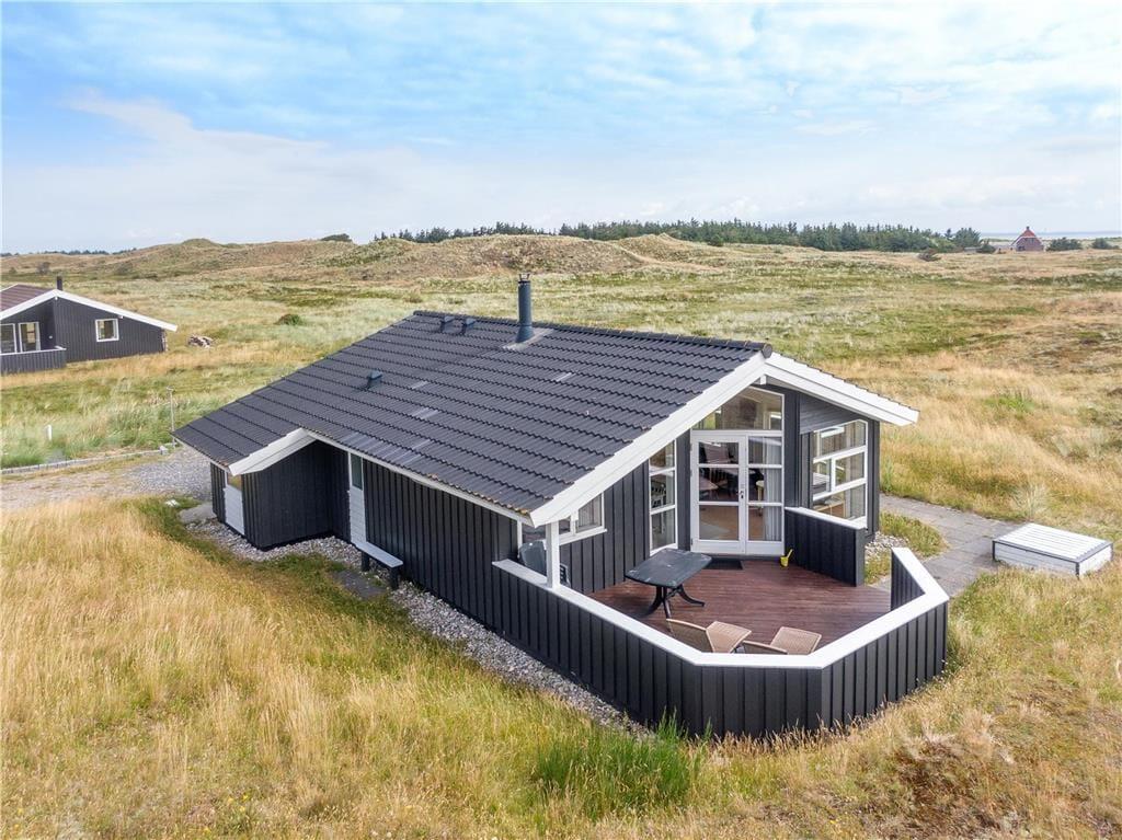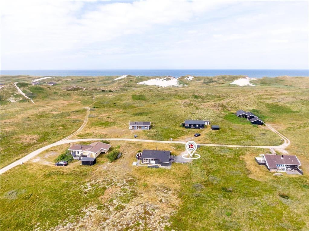Dette pragtfulde fritidshus ligger for enden af en lille, lukket vej omgivet af smuk natur. Få skridt fra matriklen fører små stier gennem det vestjyske landskab med marehalm og lyngklædte klitter, og I skal kun den korte gåtur op over “havbjergene”, før I står ved Vesterhavet, der på varme sommerdage inviterer til svalende dukkerter.