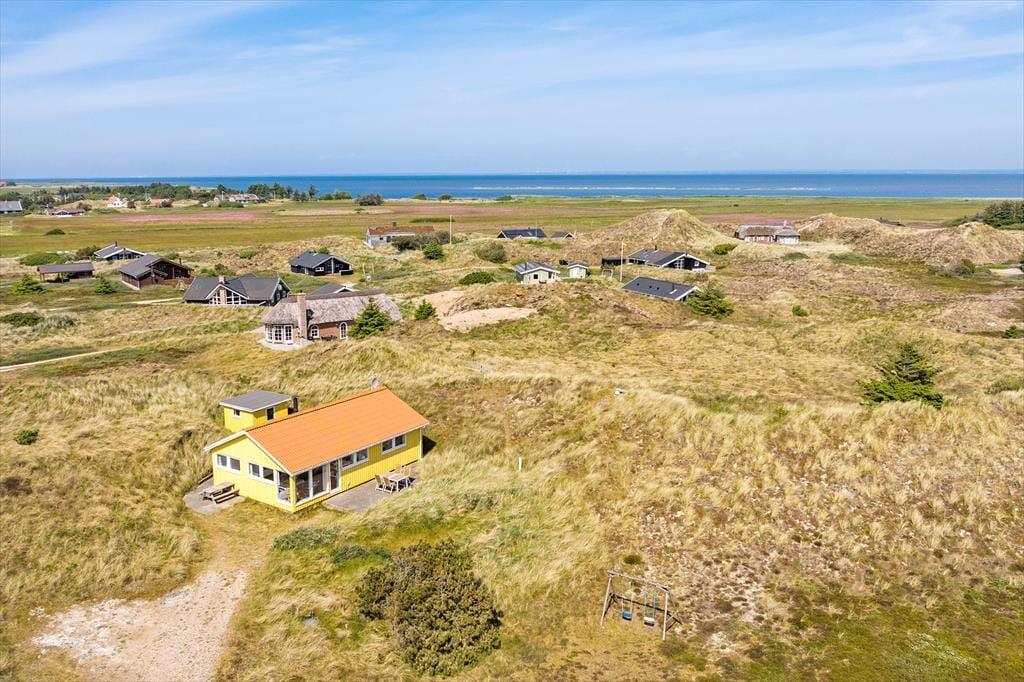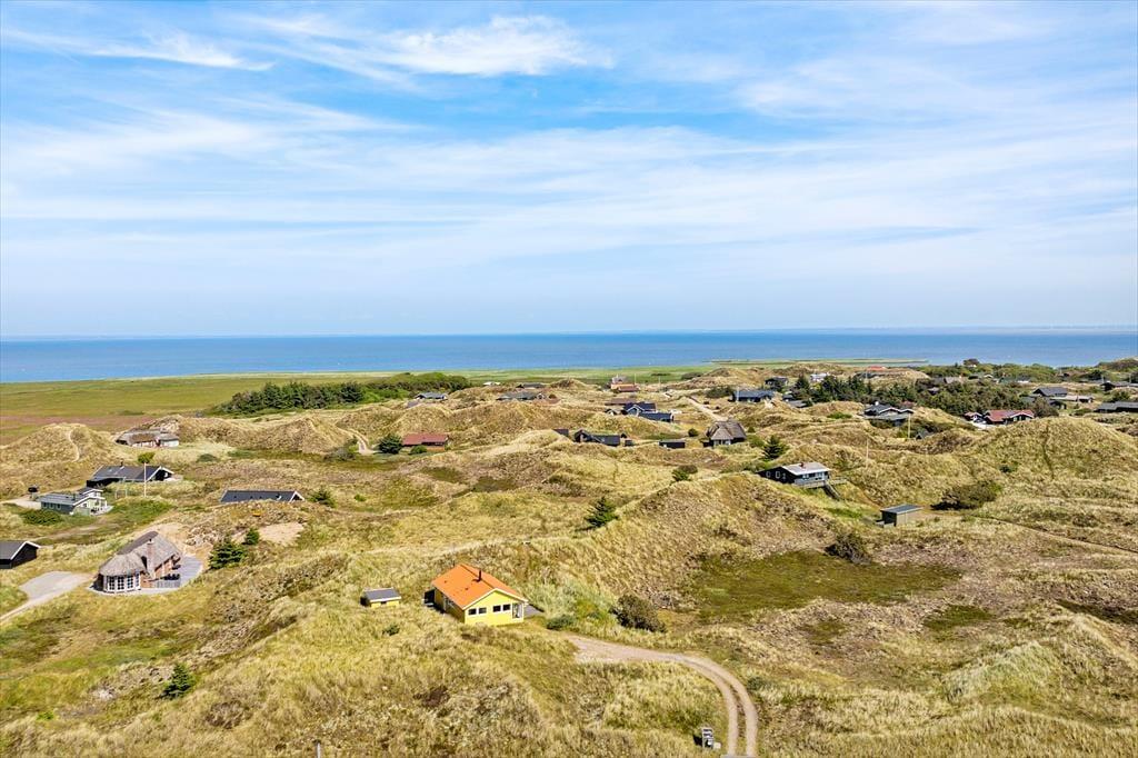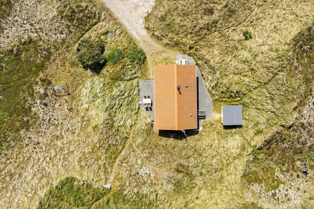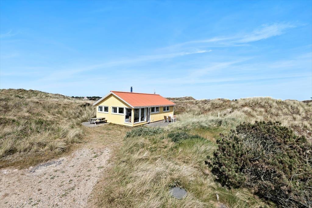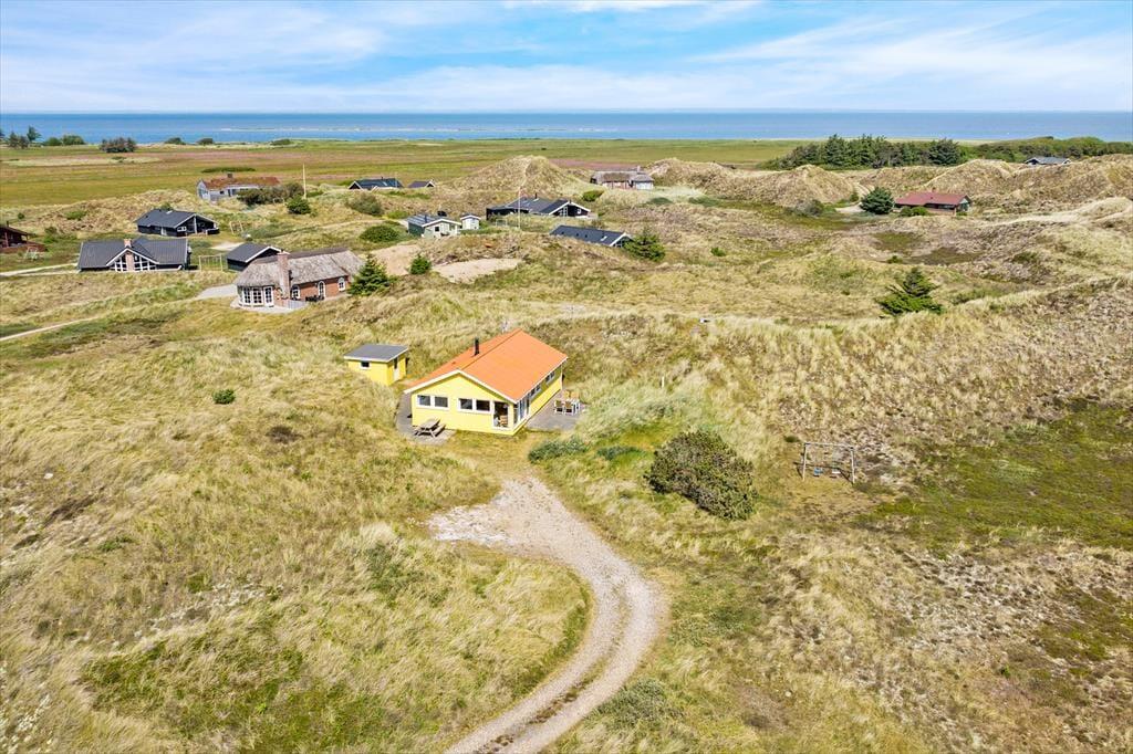 Med terrasser mod syd og nord er her rig mulighed for at nyde fridagene under åben himmel, og den sydvendte har sol dagen lang og god plads til at grille. Herfra er udsigten til klitlandskabet og Haurvigs gamle sømærke på bavnehøjen spektakulær. Grunden måler næsten 1,2 hektar med uberørt natur, så I har masser af plads omkring jer og ingen tætte naboer.