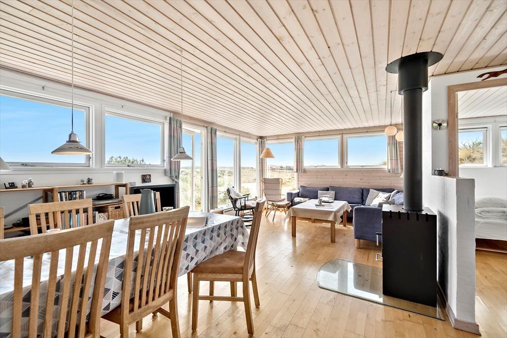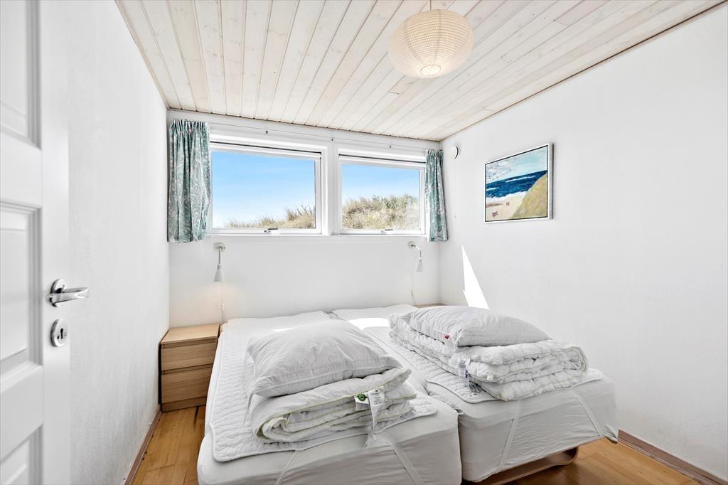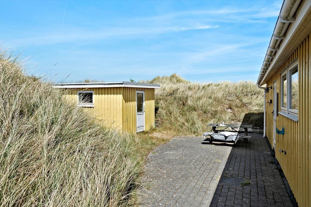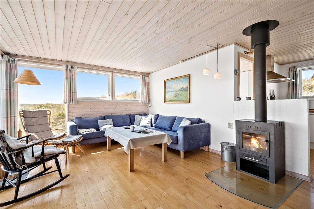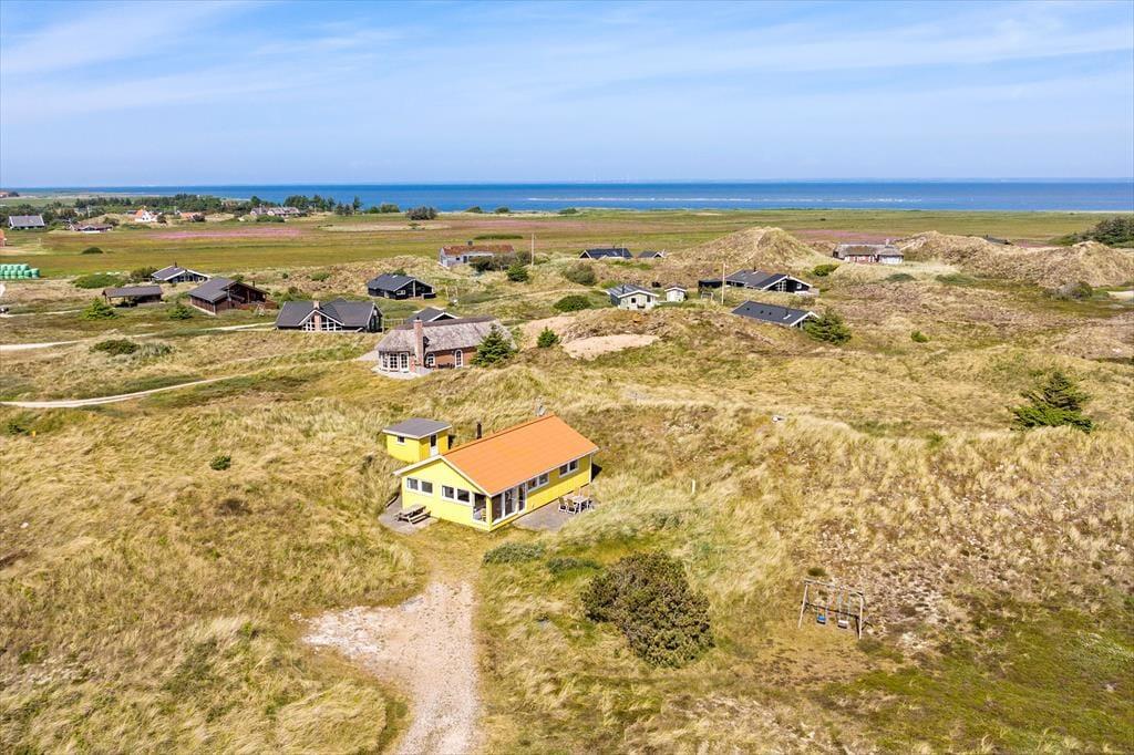 Med terrasser mod syd og nord er her rig mulighed for at nyde fridagene under åben himmel, og den sydvendte har sol dagen lang og god plads til at grille. Herfra er udsigten til klitlandskabet og Haurvigs gamle sømærke på bavnehøjen spektakulær. Grunden måler næsten 1,2 hektar med uberørt natur, så I har masser af plads omkring jer og ingen tætte naboer.