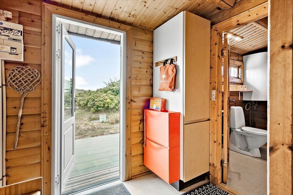 Der er få skridt til stranden og Vesterhavets blå bølger, hvor I kan tage en svalende dukkert på sommerens varme dage. I ydersæsonerne er den langstrakte strand stedet, hvor I kan lade jer ruske godt igennem af vestenvinden, men bølgerne bruser og havskummet fyger. Stier inviterer til skønne gåture gennem klitheden, og cykelstien giver mulighed for lange cykelture gennem det smukke, kuperede landskab, der huser rådyr, harer, ræve og et rigt fugleliv. Foruden havet har i Ringkøbing Fjord i gåafstand, især den hyggelige Vinterleje Havn hvor I kan nyde en kop kaffe på badebroen er et besøg værd. En køreturen ad landevejen mod nord til butikkerne og spisestederne i Hvide Sande klares på under ti minutter.