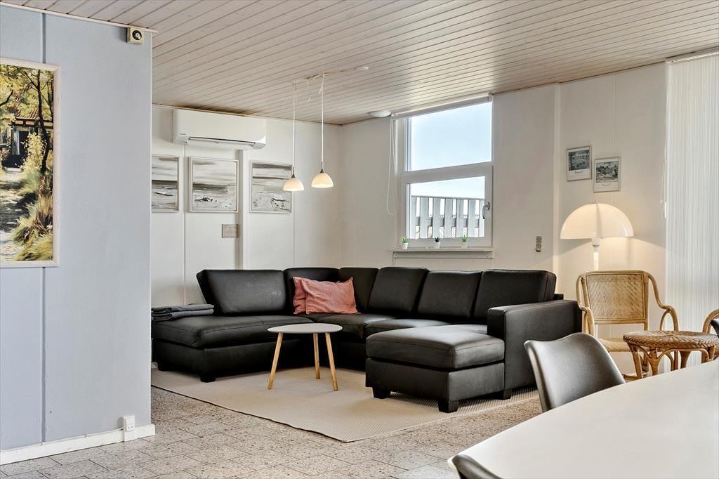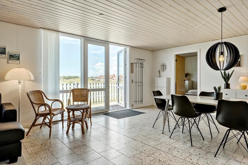 Denne ferielejlighed ligger blot 800 meter fra stranden og Vesterhavets blå bølger, og foruden en velindrettet feriebolig får I en solvendt terrasse med udsigt til Ringkøbing Fjord.
