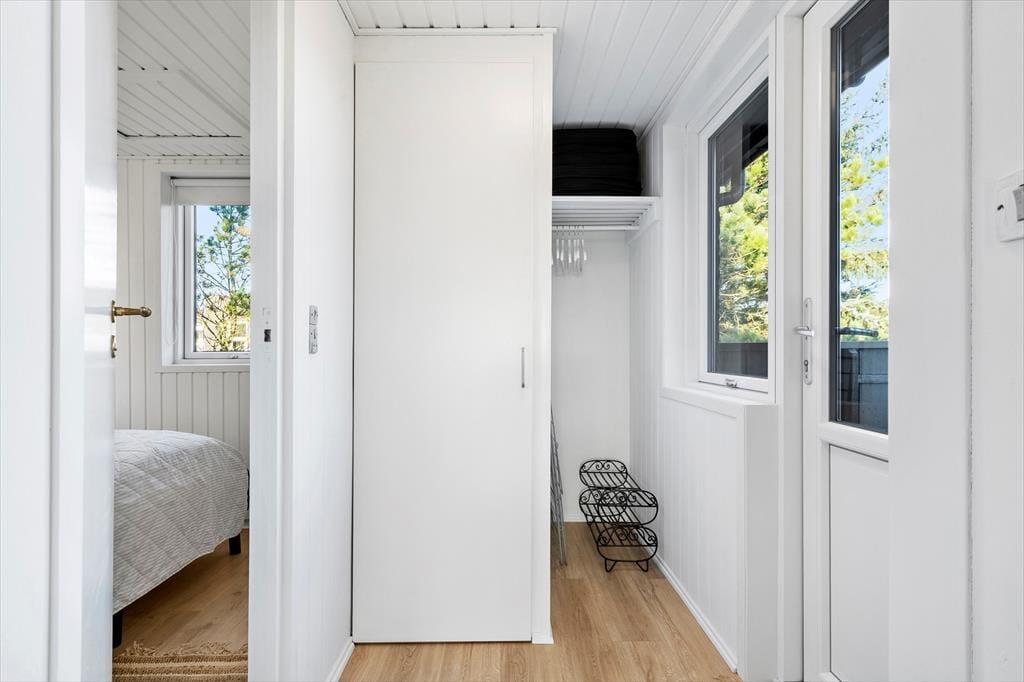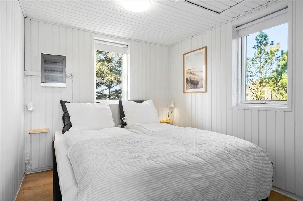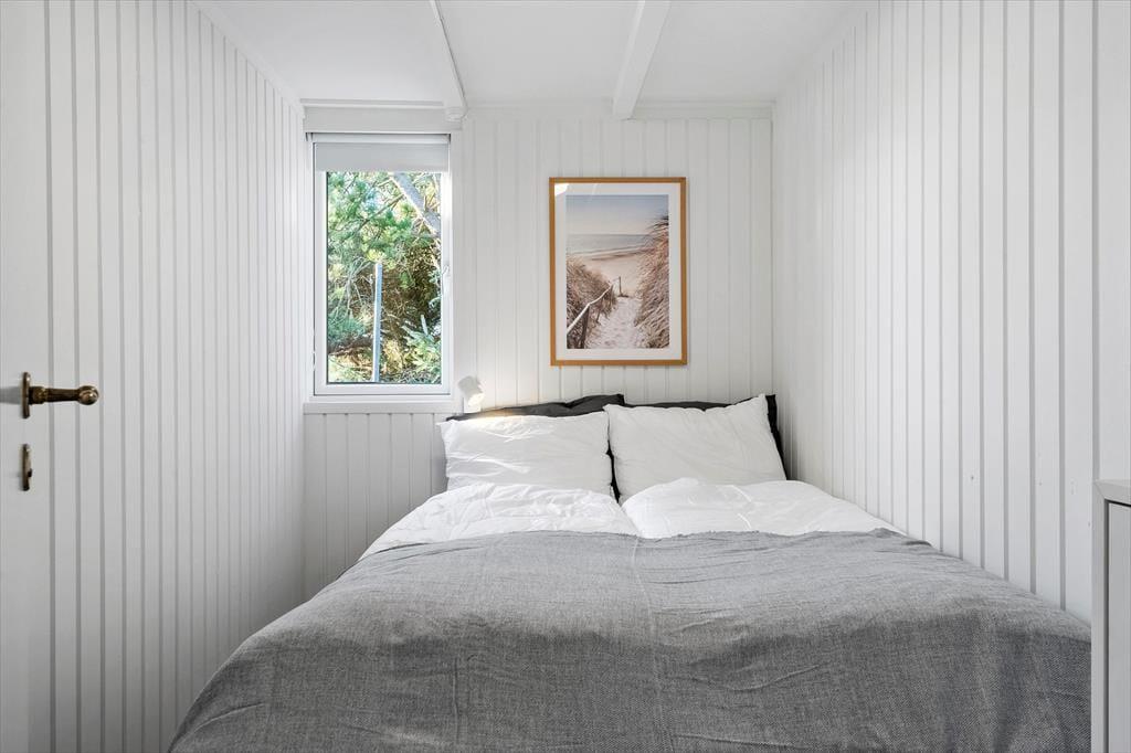 Det 85 m² store sommerhus er optimalt indrettet til seks personer med en gennemtænkt planløsning, der giver både plads og komfort. De tre soveværelser tilbyder gode sovepladser til hele familien, og badeværelset er nyrenoveret i 2025 med moderne materialer og en praktisk vaskemaskine.