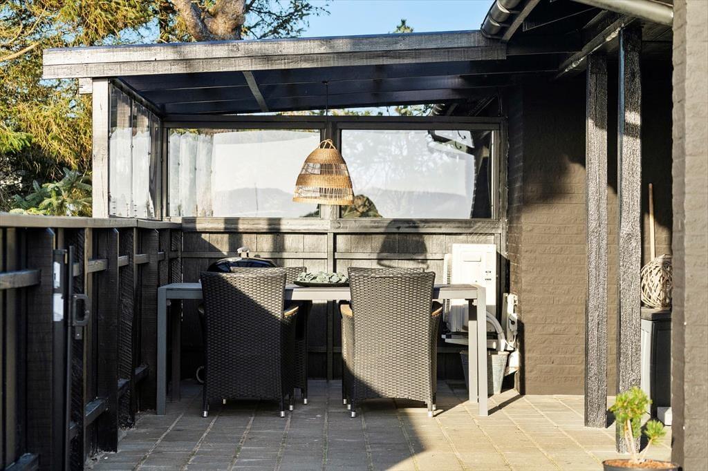 Fra stuen træder I direkte ud på den delvist overdækkede terrasse mod vest – det perfekte sted at nyde en kop kaffe, en god bog eller bare den imponerende udsigt. Derudover finder I åbne terrasser mod både syd og øst, hvilket giver jer mulighed for at finde en hyggelig krog i læ eller sol, uanset tidspunkt på dagen og vindretning.