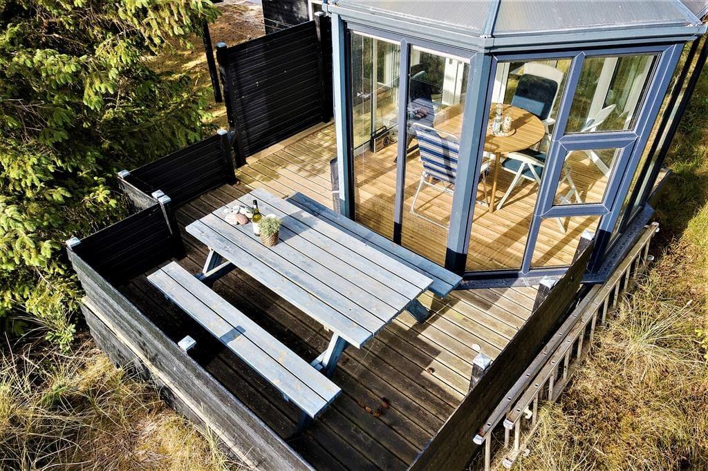 Fra stuen er der direkte adgang til en syd- og østvendt terrasse, hvor I kan begynde dagen med at nyde en dampende varm kop kaffe til synet af solopgangen over fjorden. På husets modsatte side findes en hyggelig, vestvendt terrasse, og tilmed har I en skøn pavillon, hvor I kan nyde udelivet, selv hvis en sommerbyge skulle trække forbi.
