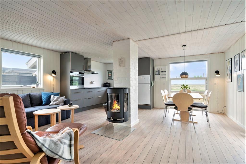 Dette charmerende og moderne sommerhus er et godt match til jer, der gerne vil bruge feriedagene omgivet af vestjysk natur og med få skridt til Vesterhavet. Fra huset og en sydvendt terrasse er der udsigt til Ringkøbing Fjord, som tager sig særligt smuk ud i solopgangen.