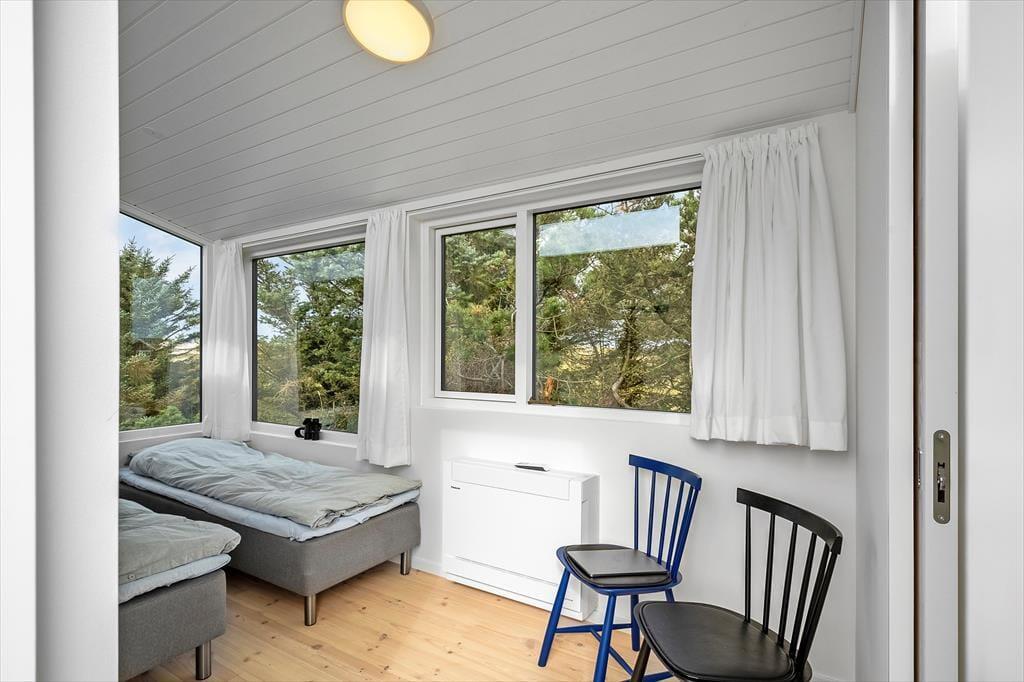 Inde i sommerhuset møder I en lys og indbydende atmosfære, hvor den gennemførte renovering har skabt et tidssvarende, men stadig hyggeligt udtryk. Store vinduespartier trækker naturen helt ind i stuen, så I kan nyde klitternes skiftende farver fra morgen til aften. Opholdsrummet indbyder til samvær, uanset om I laver mad i det åbne køkken, spiller spil ved spisebordet eller lader samtalerne flyde i sofahjørnet. Det tilhørende anneks rummer to senge samt eget badeværelse – en ideel løsning til gæster, teenagere eller den, der ønsker lidt ekstra privatliv.